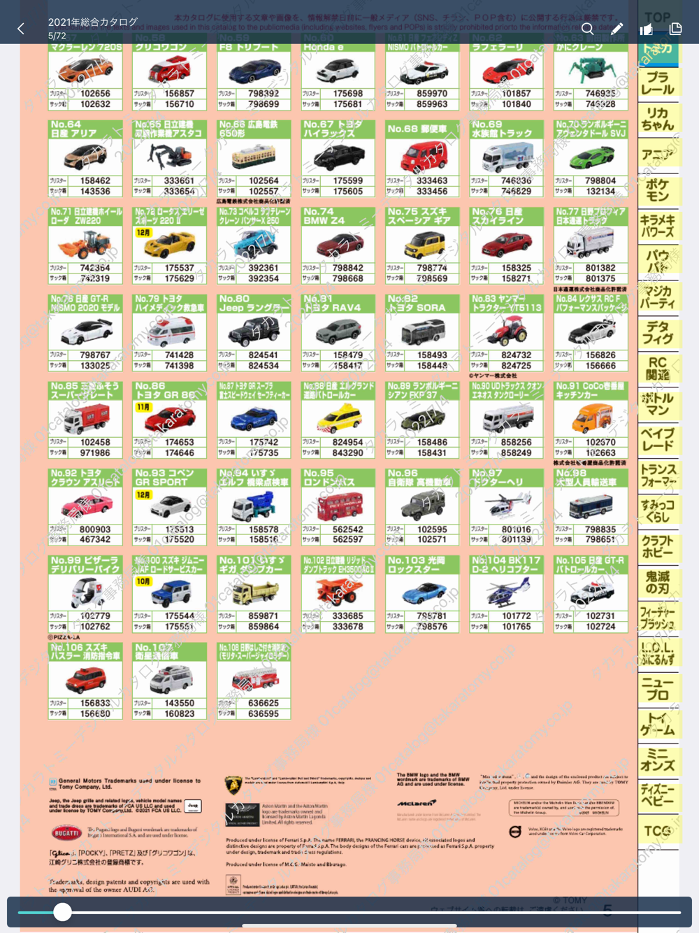 (1)上段のタブ「タカラトミーデジタルカタログ」を選択