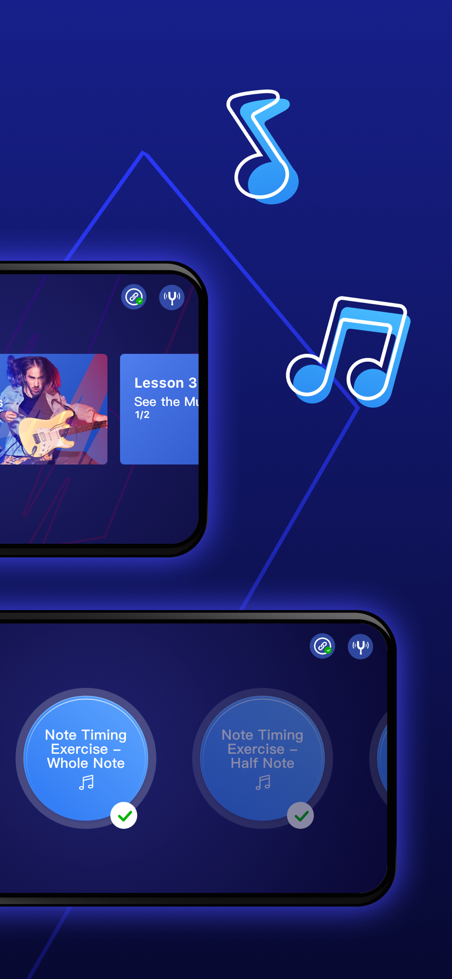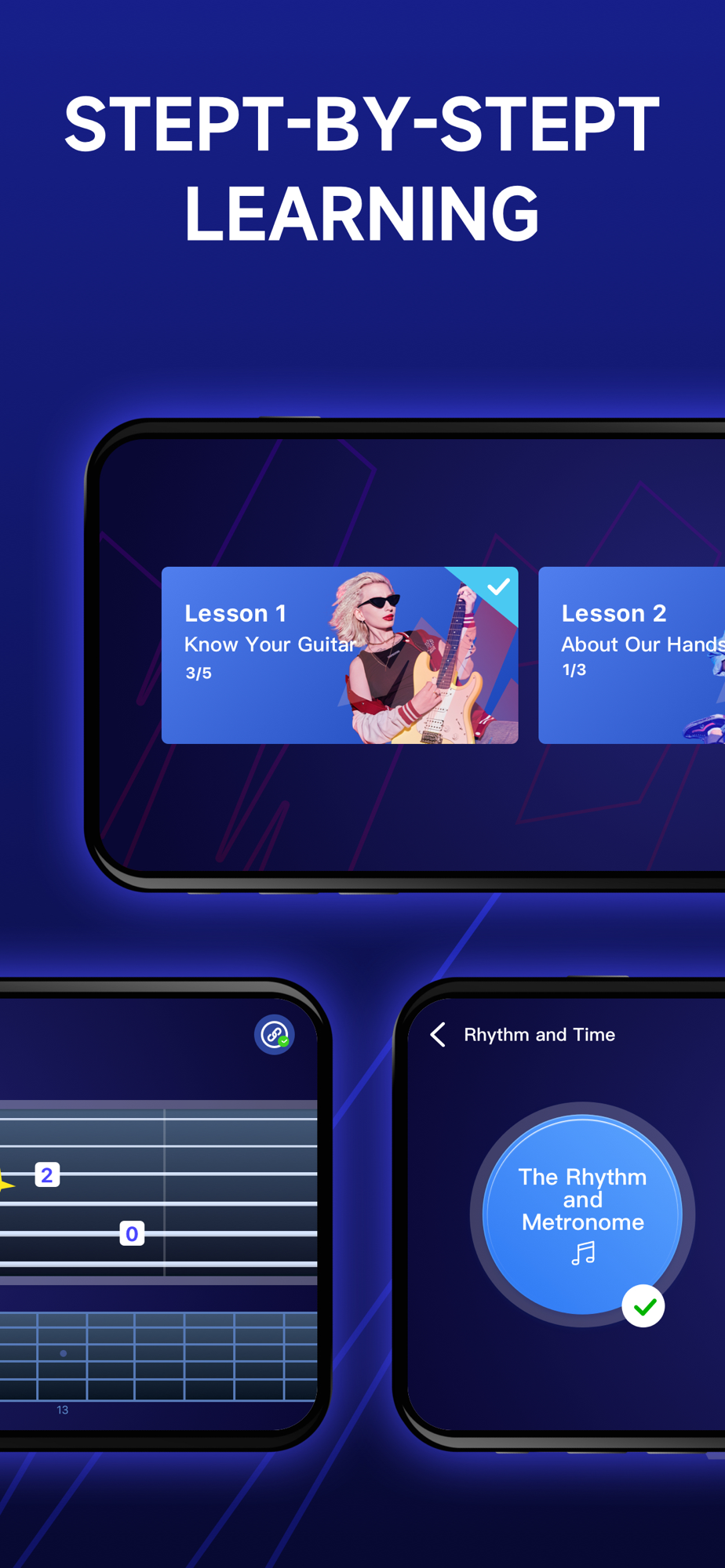 1. With perfect interaction through smart guitar and course practice, and AI real-time feedback, you can be your own tutor.