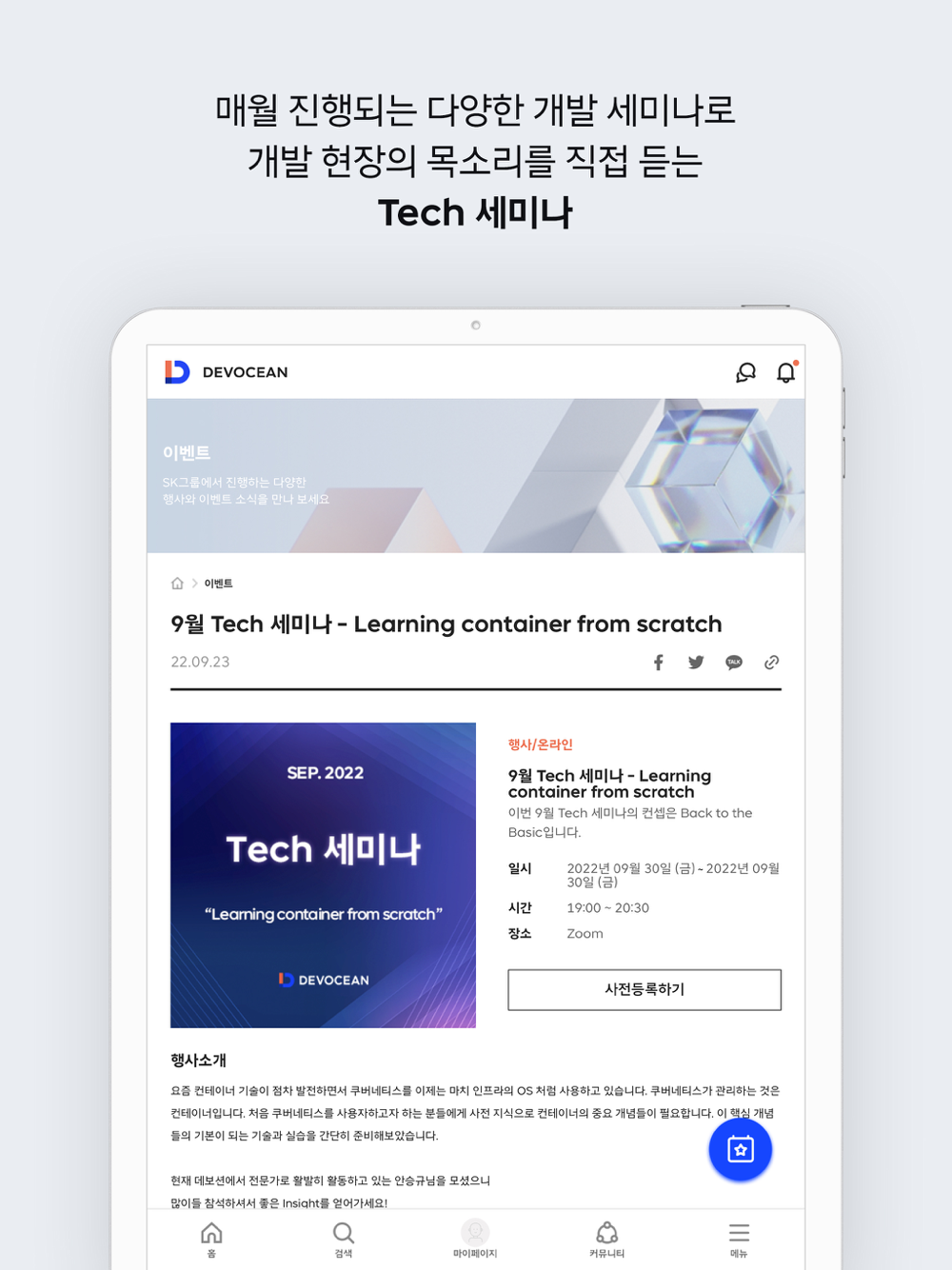 온·오프라인 세미나와 Tech 퀴즈, 룰렛 등 다양한 이벤트에 참여하세요.