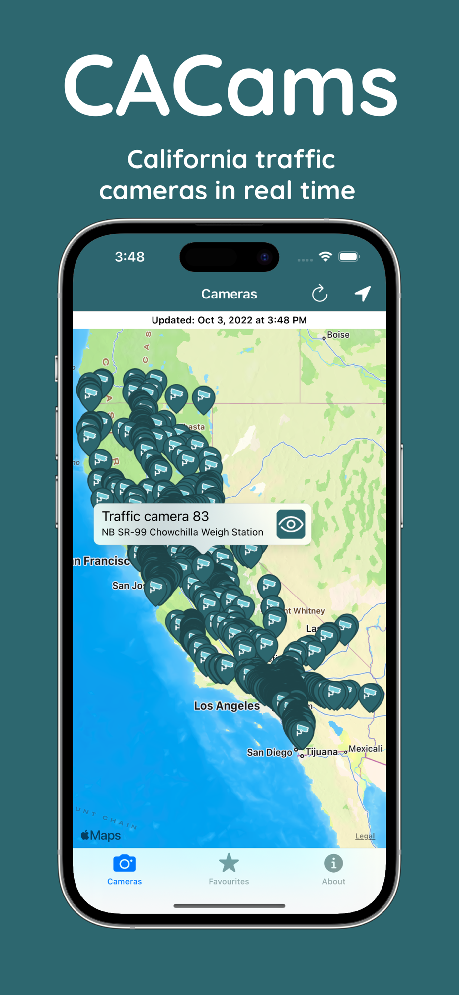 CACams allows you to view California Department of Transportation (Caltrans) traffic cameras in one place. Check for a traffic jam before moving down California's major highways.