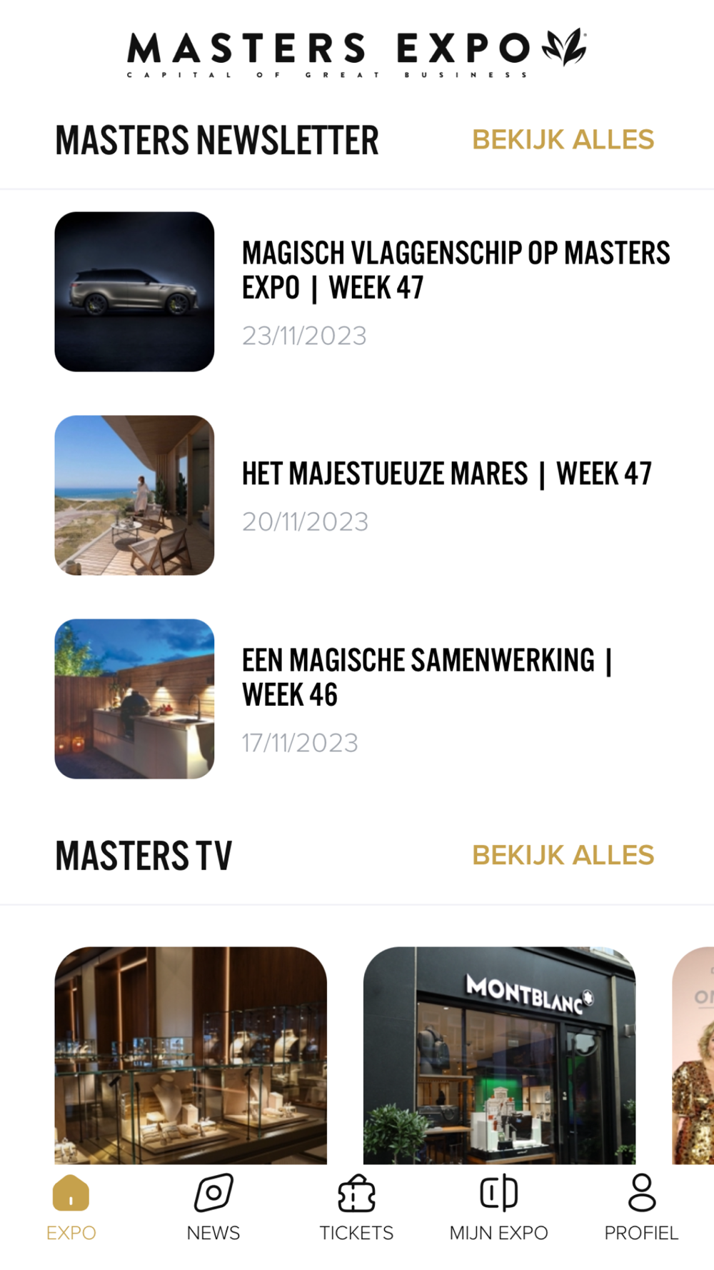 The MASTERS EXPO app keeps you up to date on the latest MASTERS EXPO news. You can read all about the participants, download your entrance tickets, view the map, and the daily program here.
