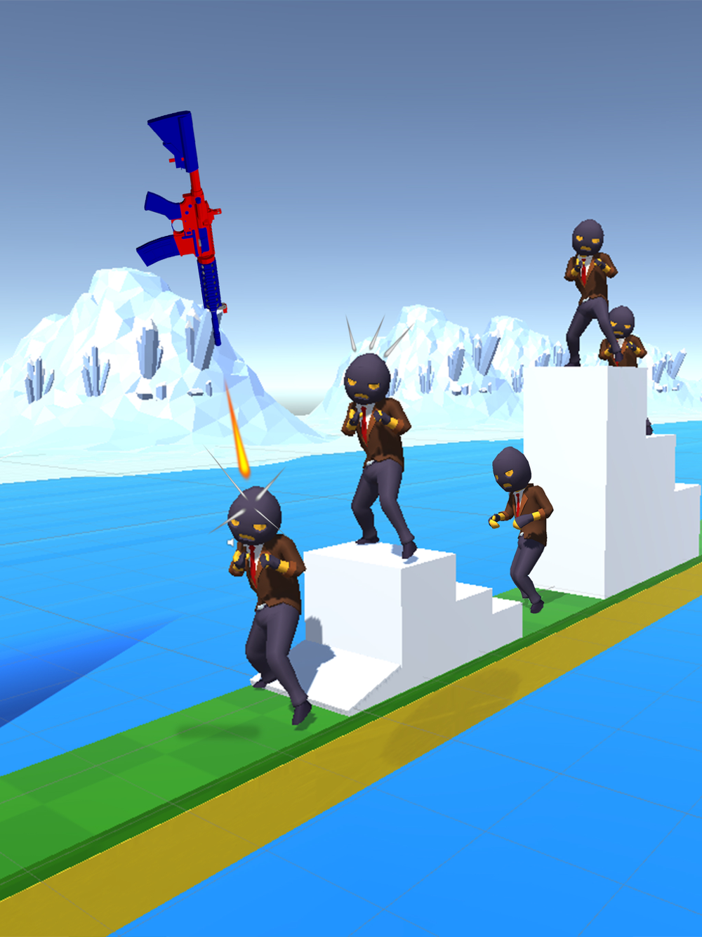 Shoot your weapon and use its recoil momentum to get as far as possible before running out of ammo!