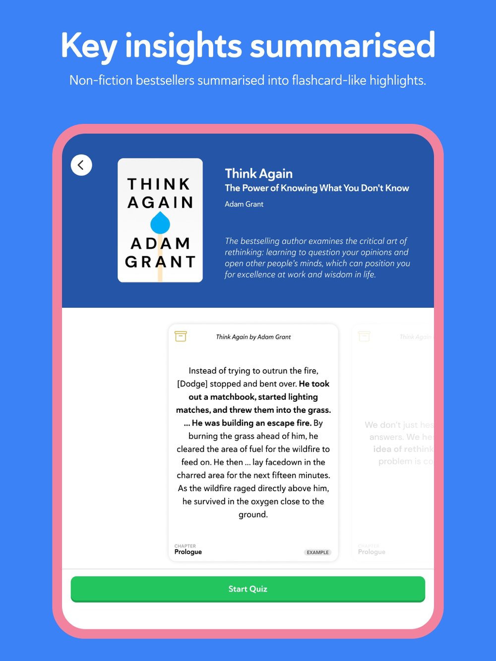 Learning should be fun — and reading sometimes is, sometimes isn't, even if it's just summaries. Our engaging quizzes make learning feel more like mini games.