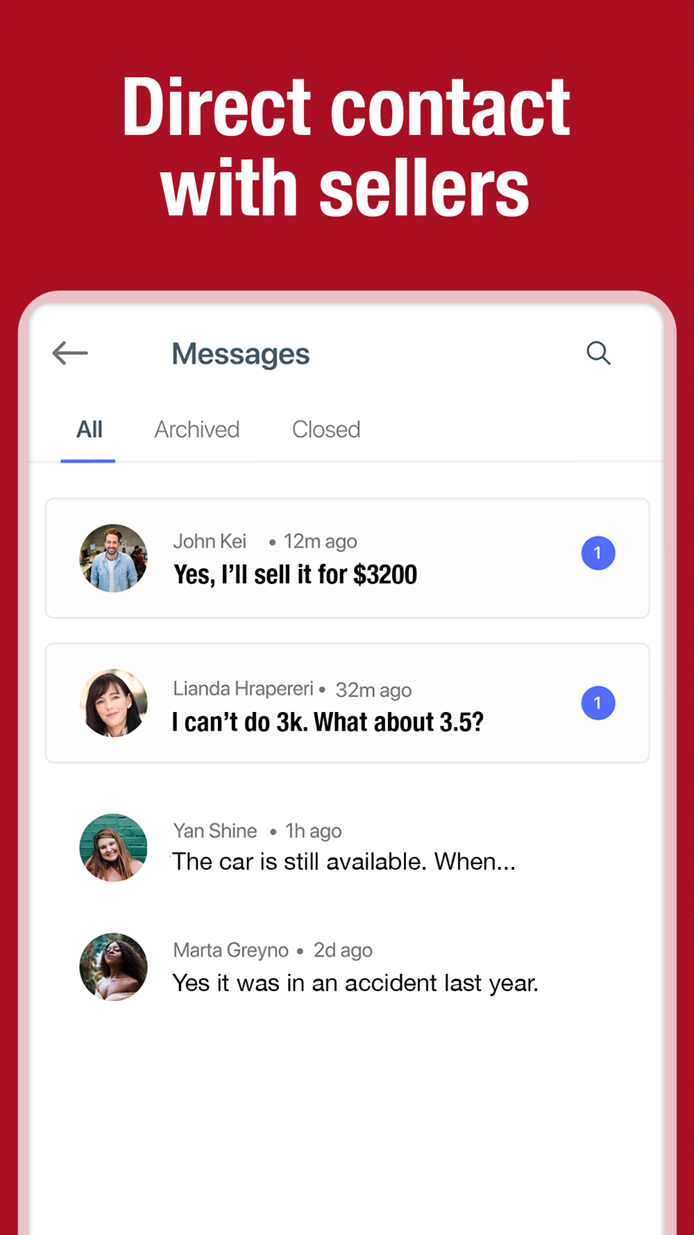 Free messaging connects buyers and sellers, allows you to set up a meeting point, and have a test drive.