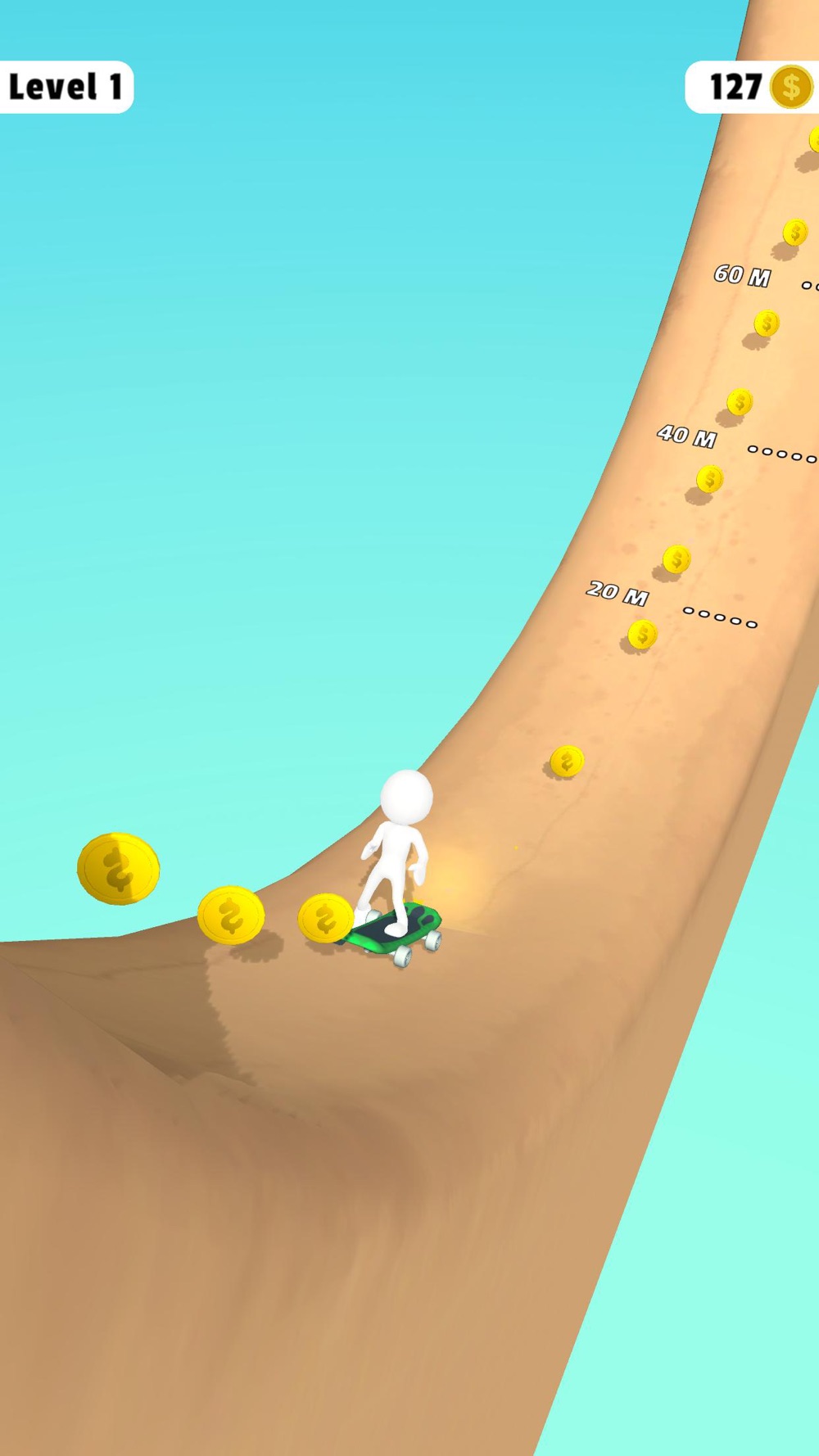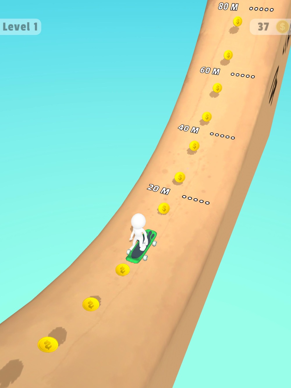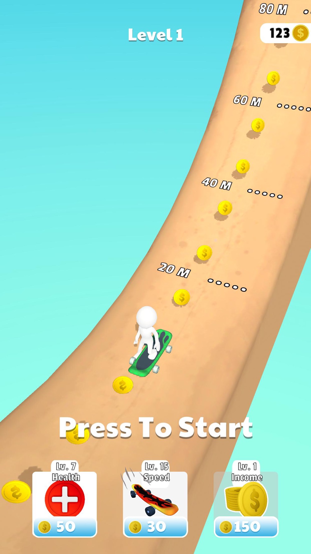 Try to slide higher without getting tired. When you reach the top, new skateboards are waiting for you!