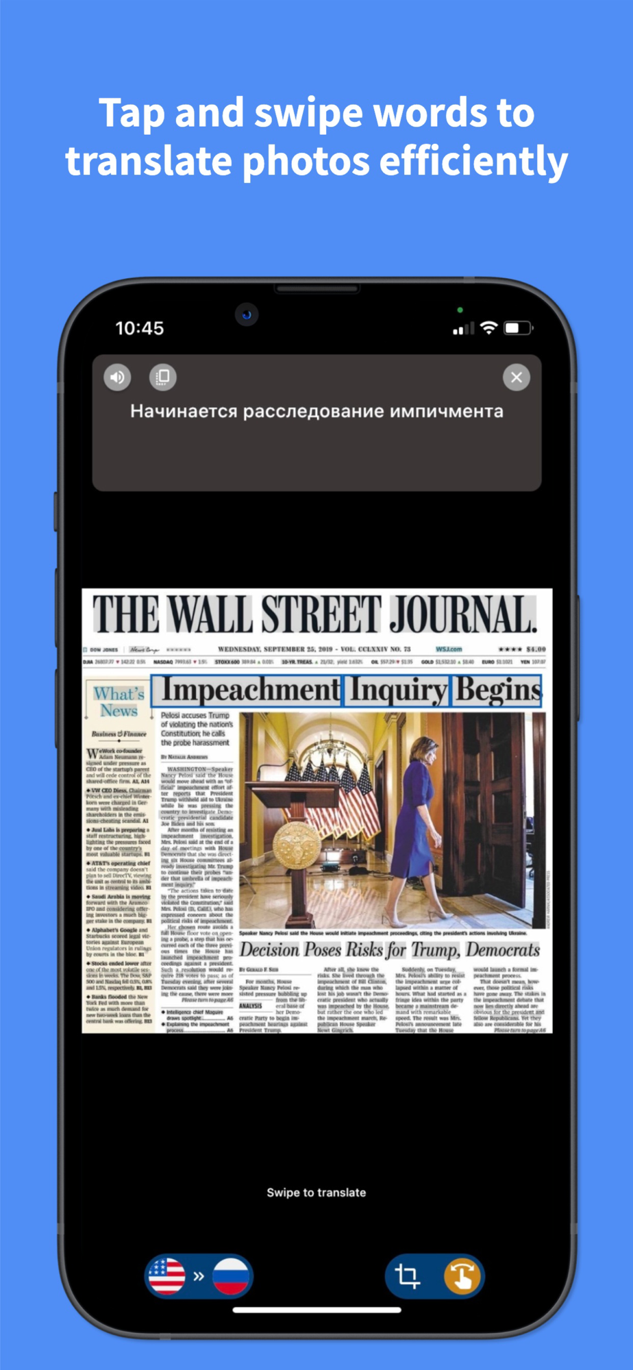 Hi ! EnRus is the leading russian Translator with a lot of outstanding features such as accurate voice translator, translate any text in English to russian or russian to english and extremely useful photo translating feature or support to learn russian easily.