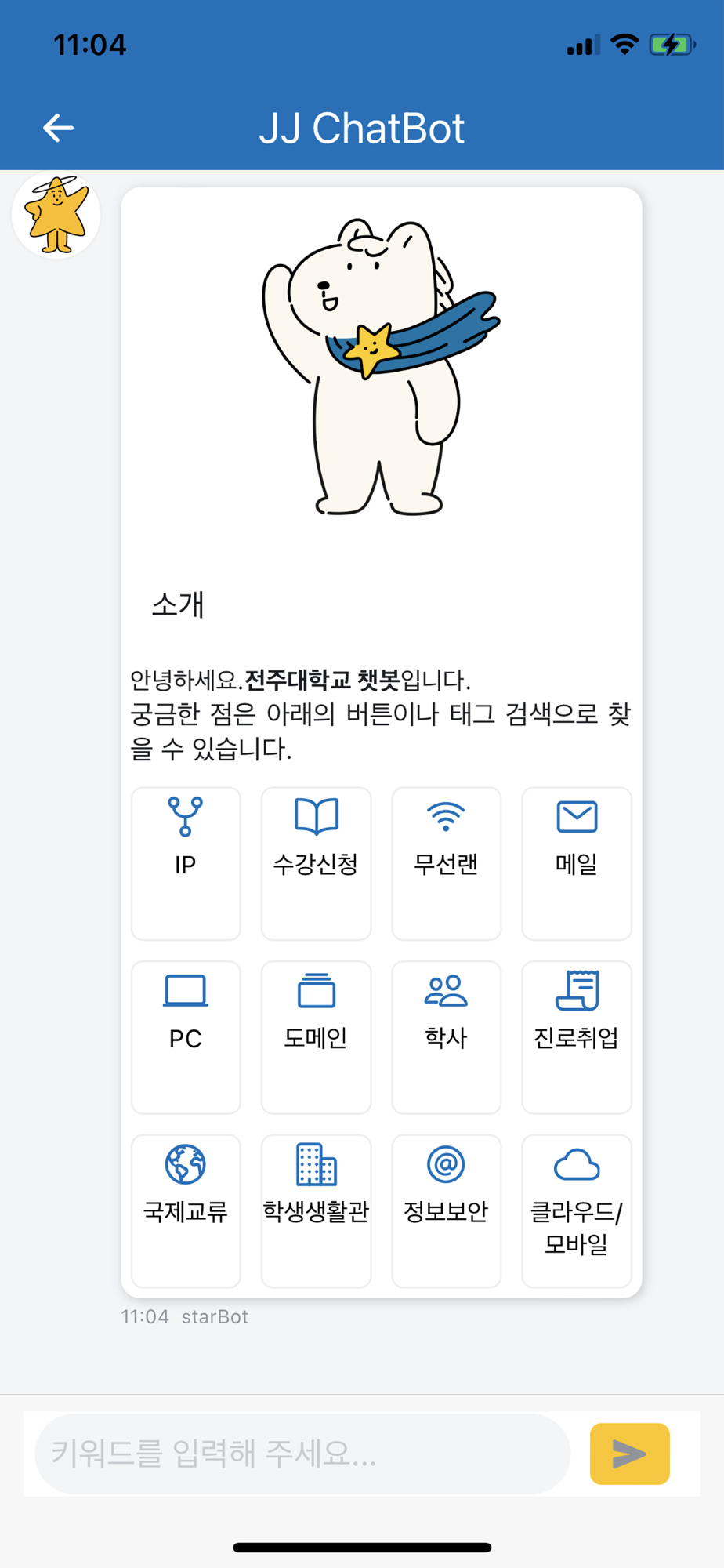 앱은 모바일 전주대학교 학사/행정 시스템과, 도서관, 그룹웨어, 사이버캠퍼스, 웹메일 등의 웹/앱과의 연결기능과 모바일신분증, 교내식당, 위치기반 서비스, 클럽, 피드, 푸시, 채팅 등의 통합 앱 서비스를 제공합니다.