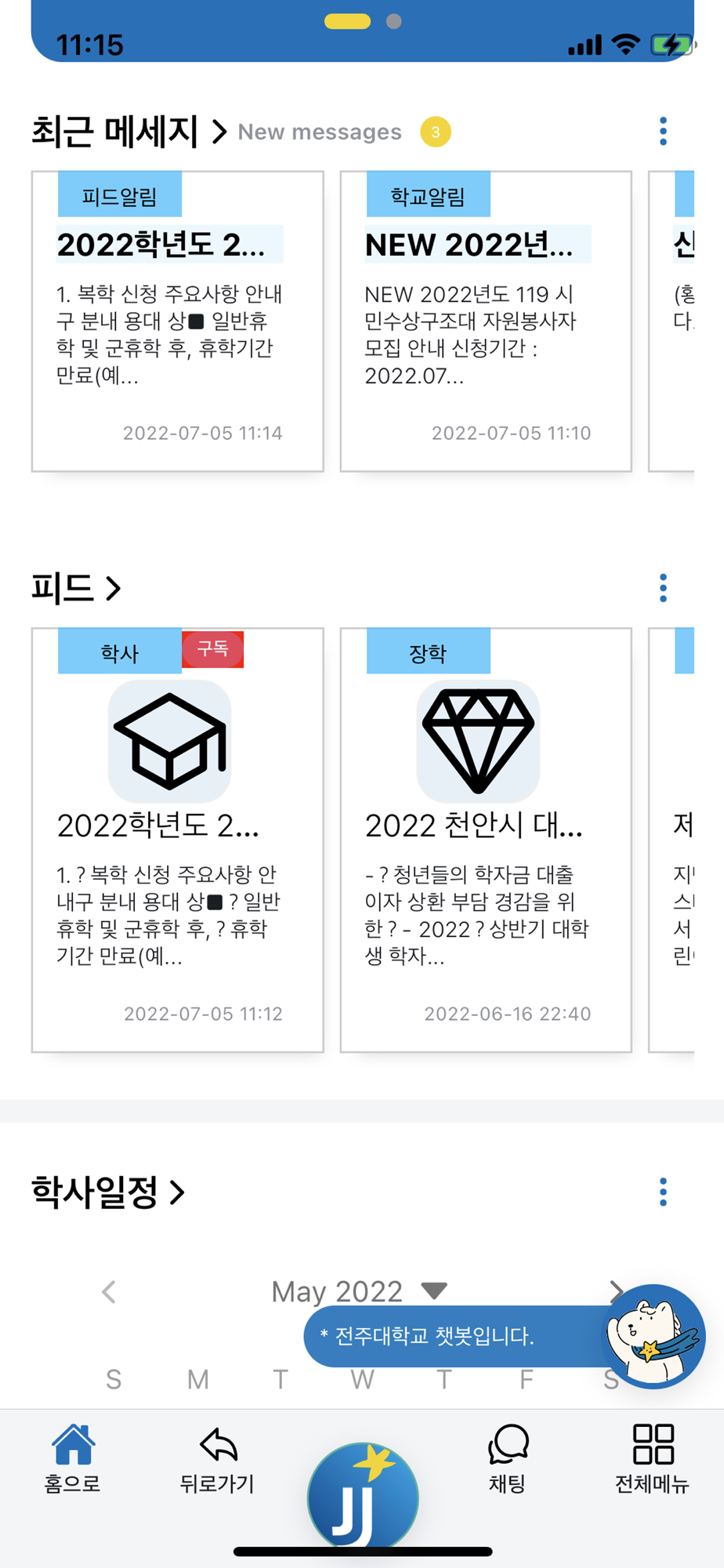 전주대학교 학생 및 교직원들을 위한 모바일 앱이 런칭 되었습니다.