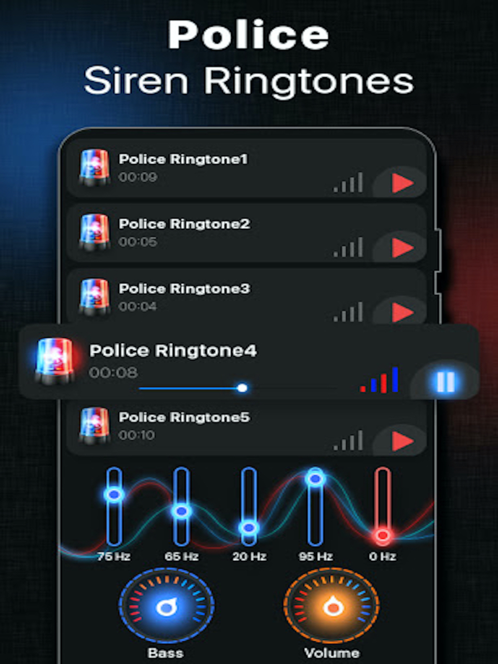 How to use this loud police siren app? Get the police shot sound app. Select the desired siren sound on the wide police horn sounds. Press the start button to turn on the police siren, then the police lights will automatically tend to flash with specific graphics and turn. Enjoy the light and sound of the siren and amaze your friends. Get attractive police sirens and lights with one app.