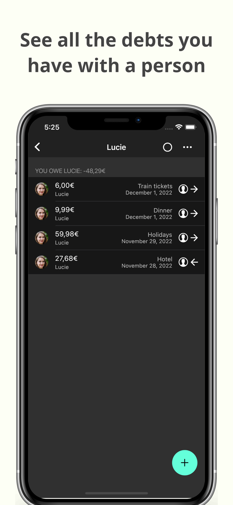 Each debt you create will contain essential fields such as the amount, the currency, the concept, etc. You can mark them as settled in any debt payoff. You can also modify or delete them completely.