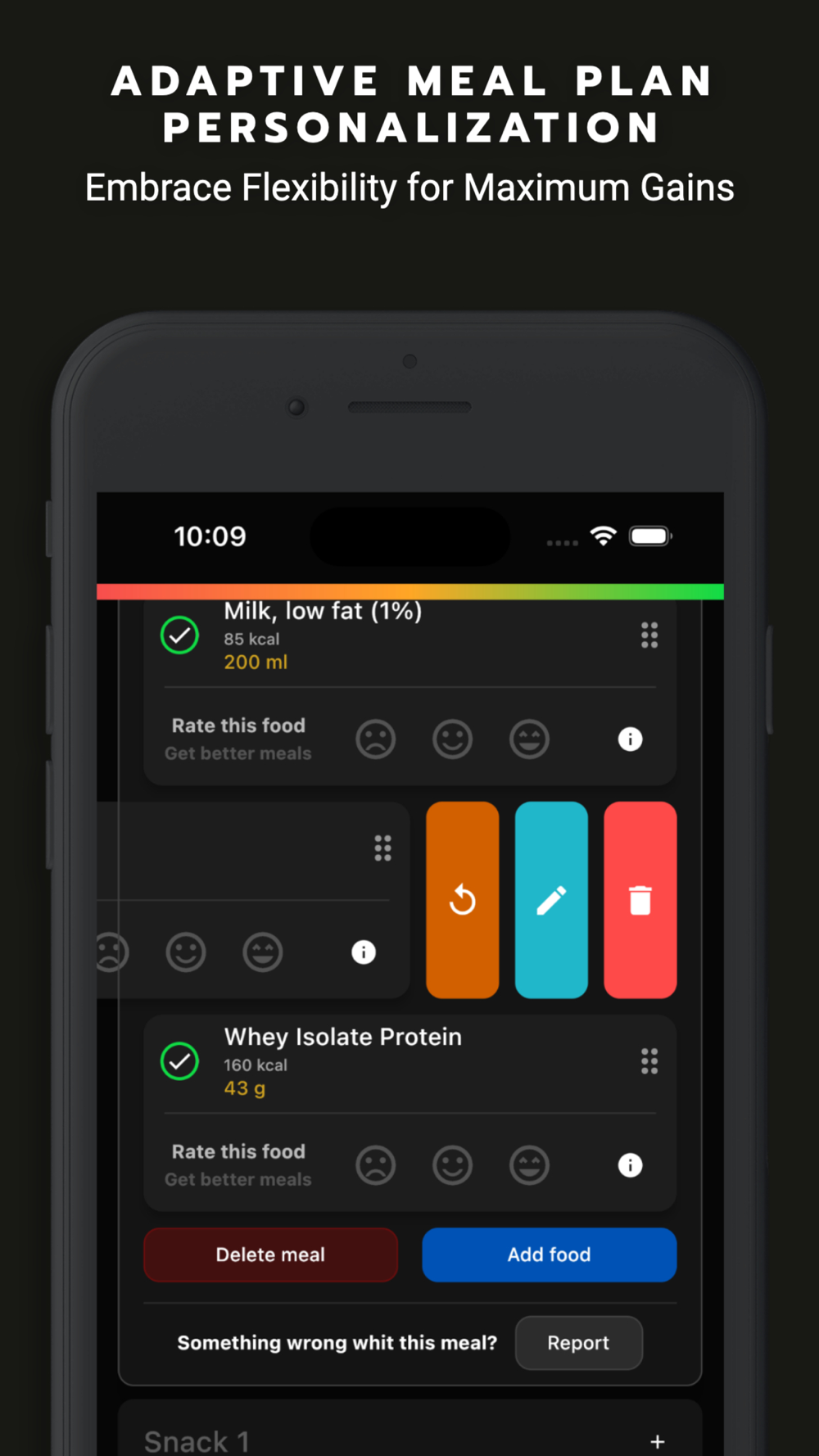 Gaintrain's smart meal planning algorithm adjusts to your evolving needs, making sure your nutrition is always on point. As you progress, our meal plans adapt to keep you on track for maximum results.