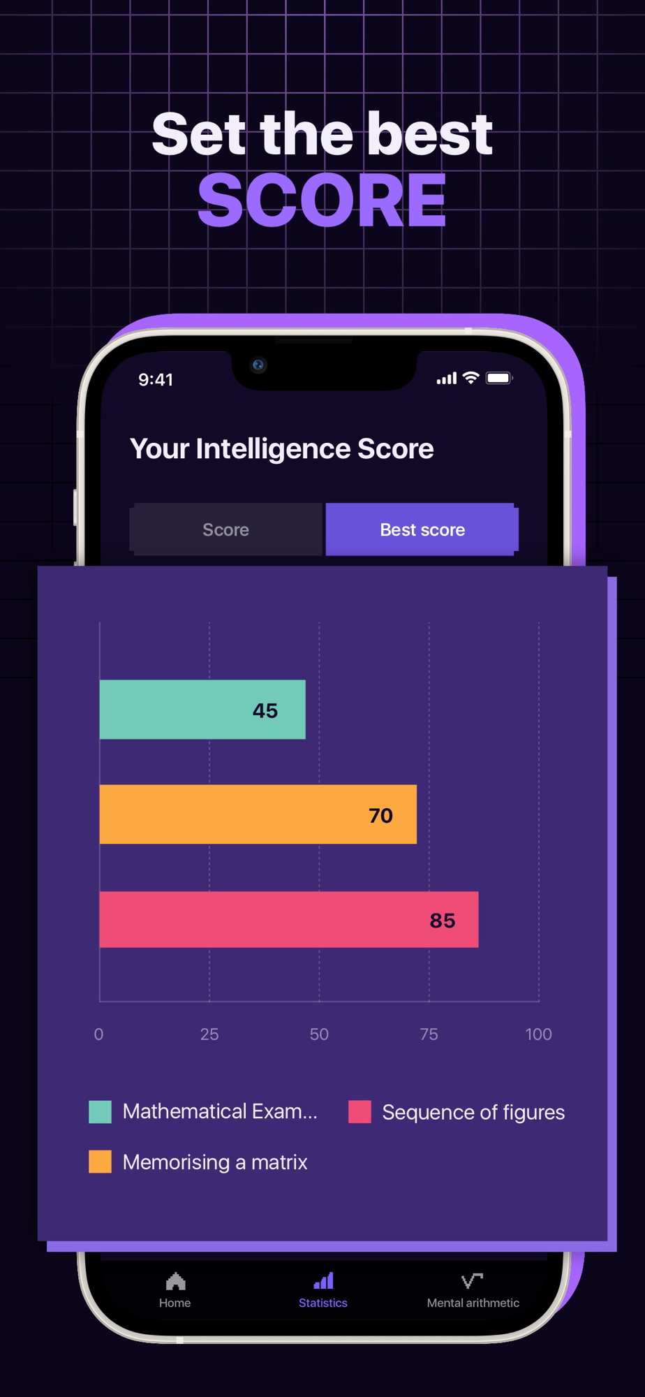 Subscription version unlocks all educational games: Mathematical examples, Memorising a matrix and Sequence of figures, offers access to unlimited lives, all time statistic and best scores statistics, and provides mental arithmetic exercises. Free version offers access for two games: Mathematical examples and Memorising a matrix, and limited number of lives which renews daily.