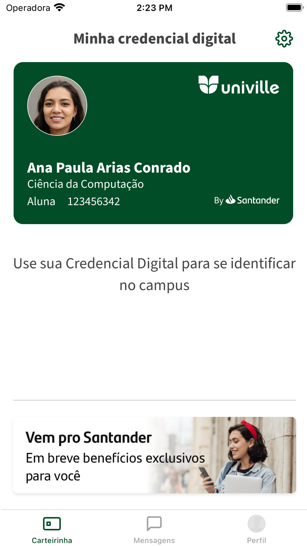 1. Criar sua identidade universitária móvel para ser reconhecido com segurança e rapidez, dentro e fora do campus da Universidade.