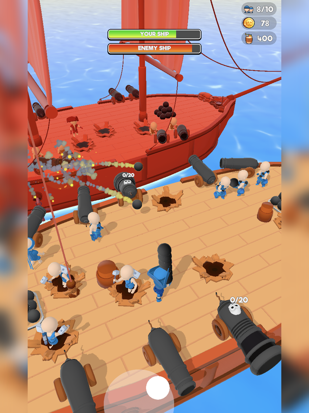 Gather your crew, upgrade your ship and set sail! You can unlock idle ship contents or new cannons! Watch for enemy pirate ship that will try to sink you! Explore island, slay bandits, find your X mark and claim your lost treasure!