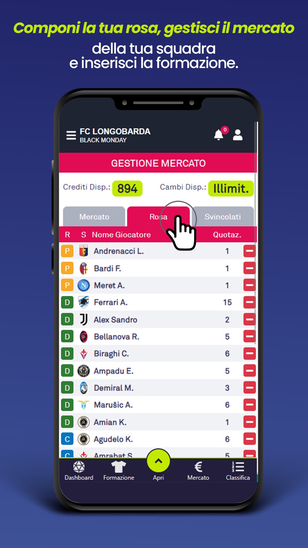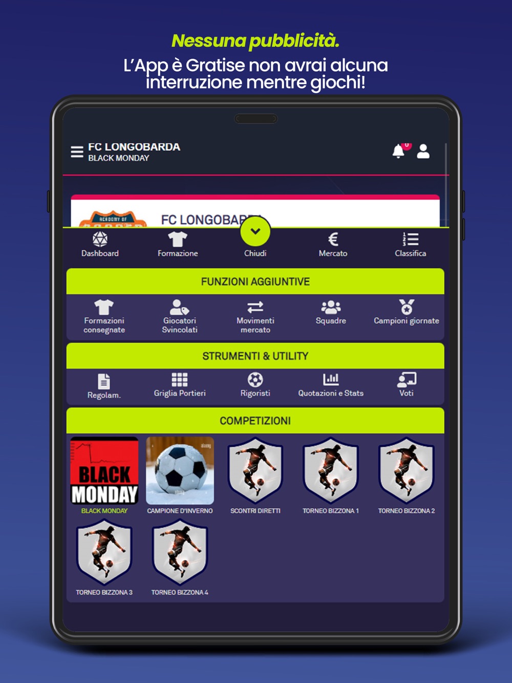 - Più di 200 personalizzazioni per creare e gestire la tua Lega