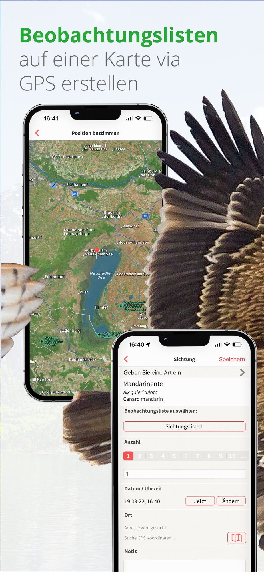 • Umfangreiche Informationen zu jeder Vogelart (rote Liste, Habitat, Verhalten, Häufigkeit + Populationsgröße in Österreich