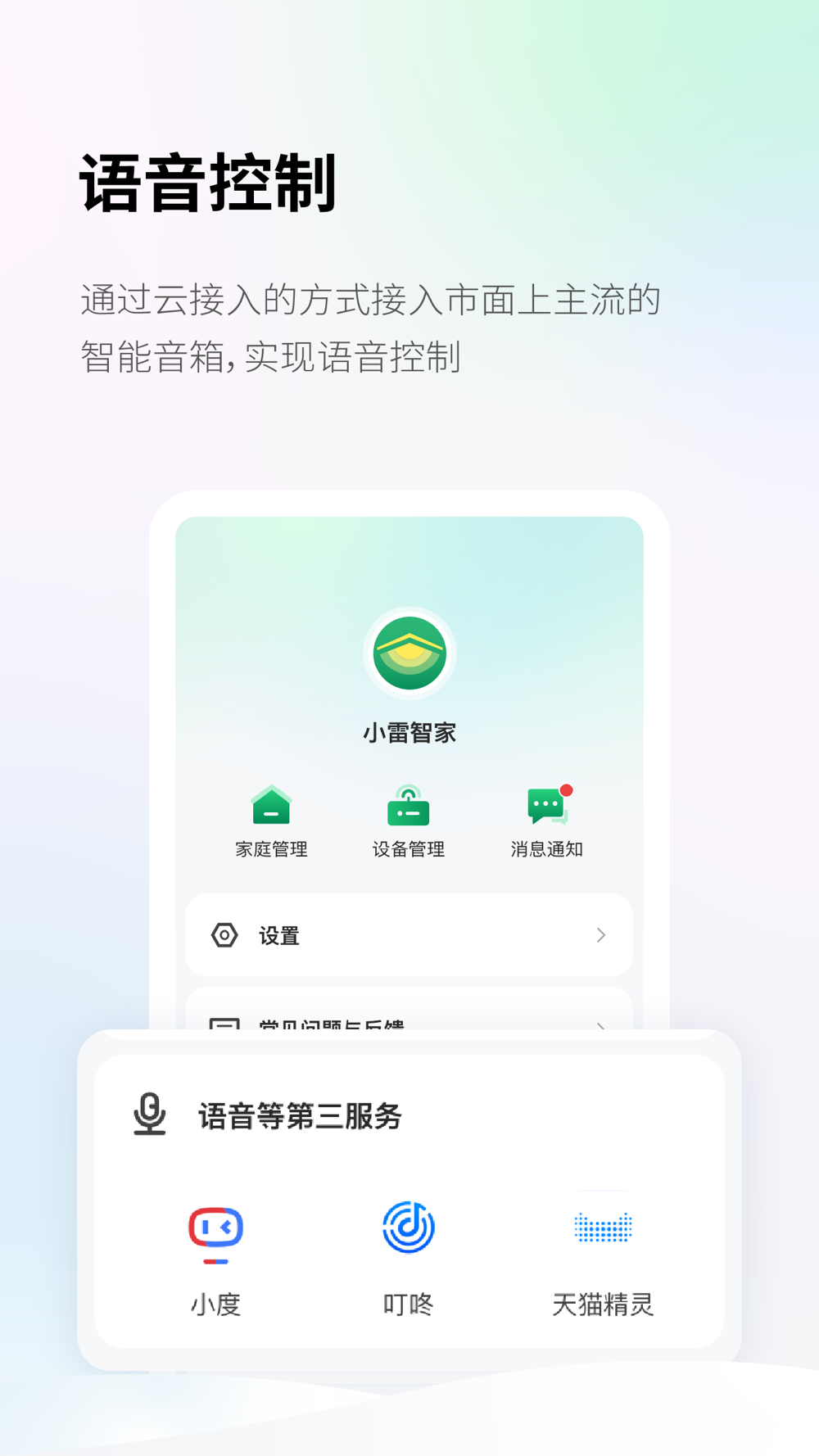 Lei Home is a smart device control and management tool for the whole house smart home. It can easily achieve the Settings, control and monitoring of smart devices, Settings and control of smart scenes, family space and member management and other functions, providing easy-to-use solutions for the whole house intelligence.