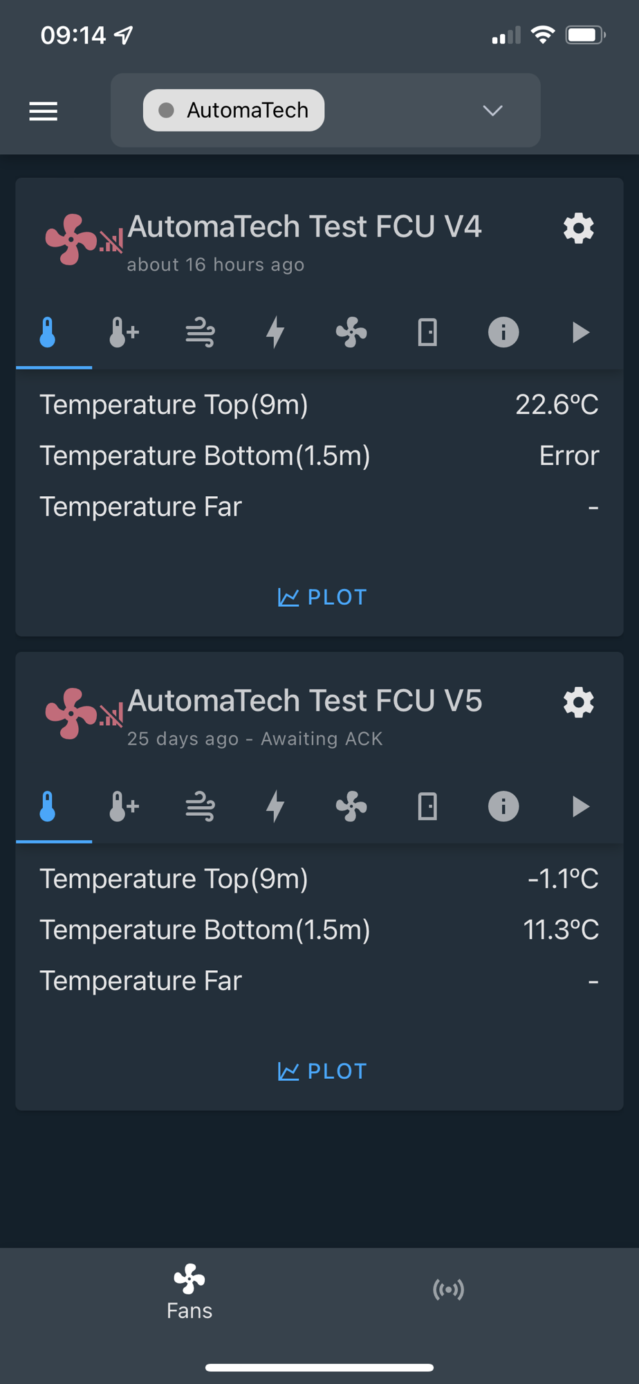 - View live data of your AGI Frost Fans sensor data