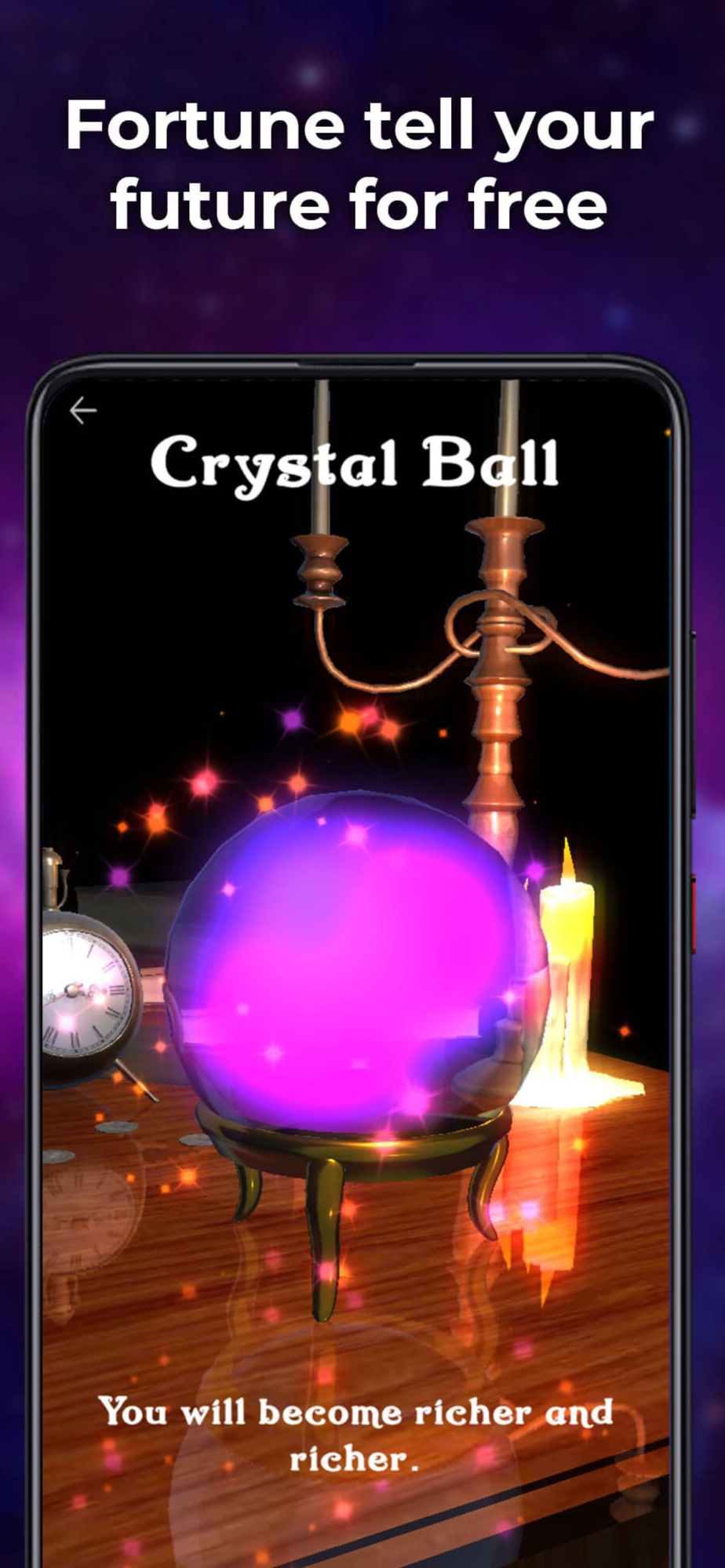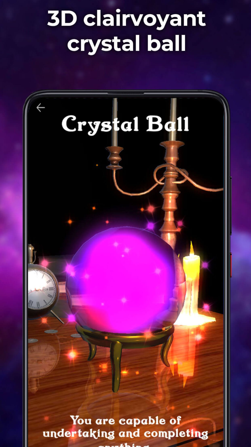 We have put all our efforts into creating an application that is as real and accurate as possible. The application shows a cozy environment with a table and a real ball of divination that will not leave you indifferent.