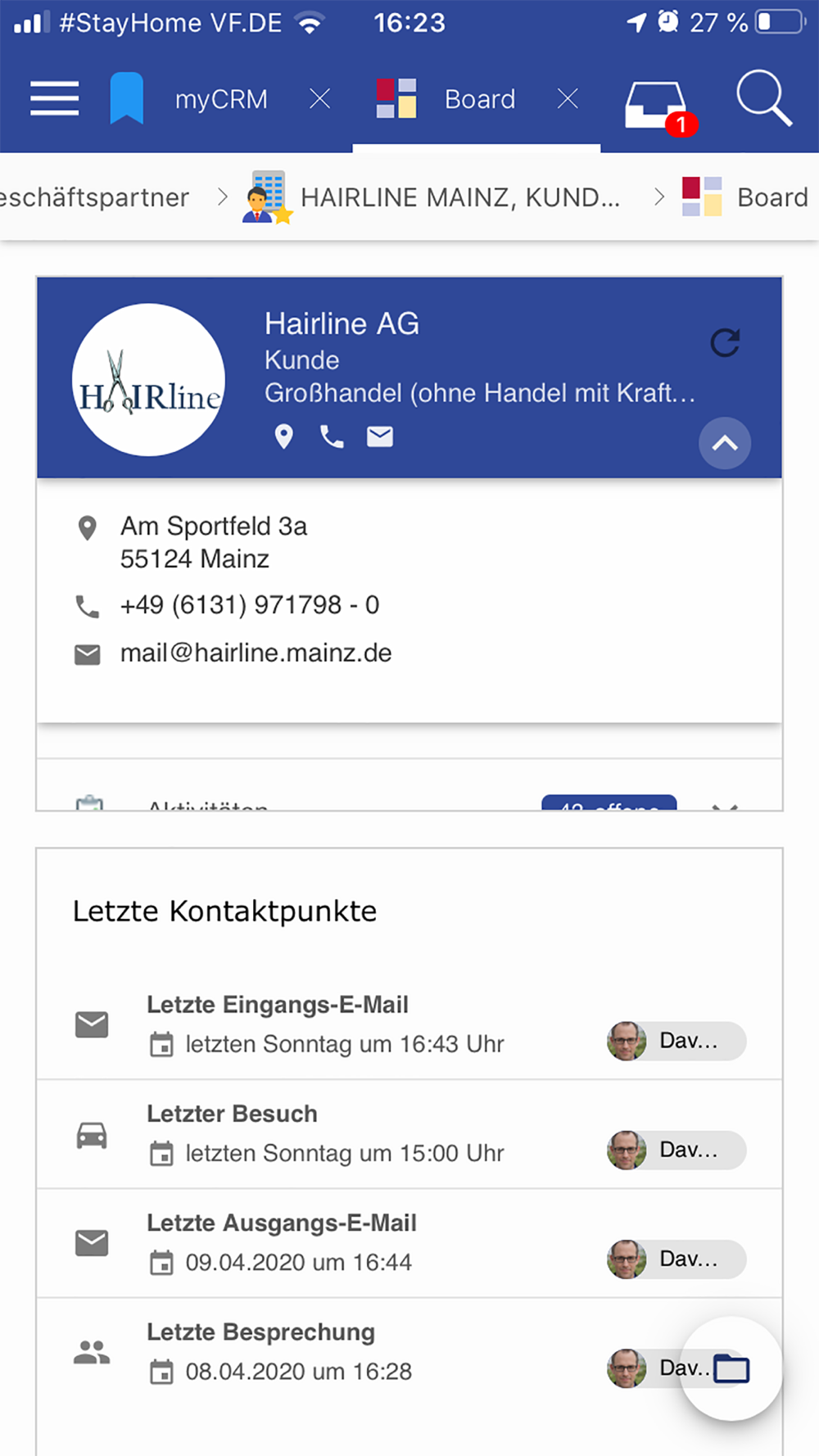 Um die sensiblen Informationen im CRM vor unberechtigten Zugriffen zu schützen, werden diese direkt vom Server abgerufen und nicht lokal gespeichert. Die Konfiguration der mobilen Applikation erfolgt über den Rich-Client. Als weitere Sicherheitsstufe kann zudem Face-ID oder Touch-ID aktiviert werden. Um optimale Datensicherheit zu gewährleisten, stellen wir Ihnen die App gerne auch auf Anfrage zur Verfügung.