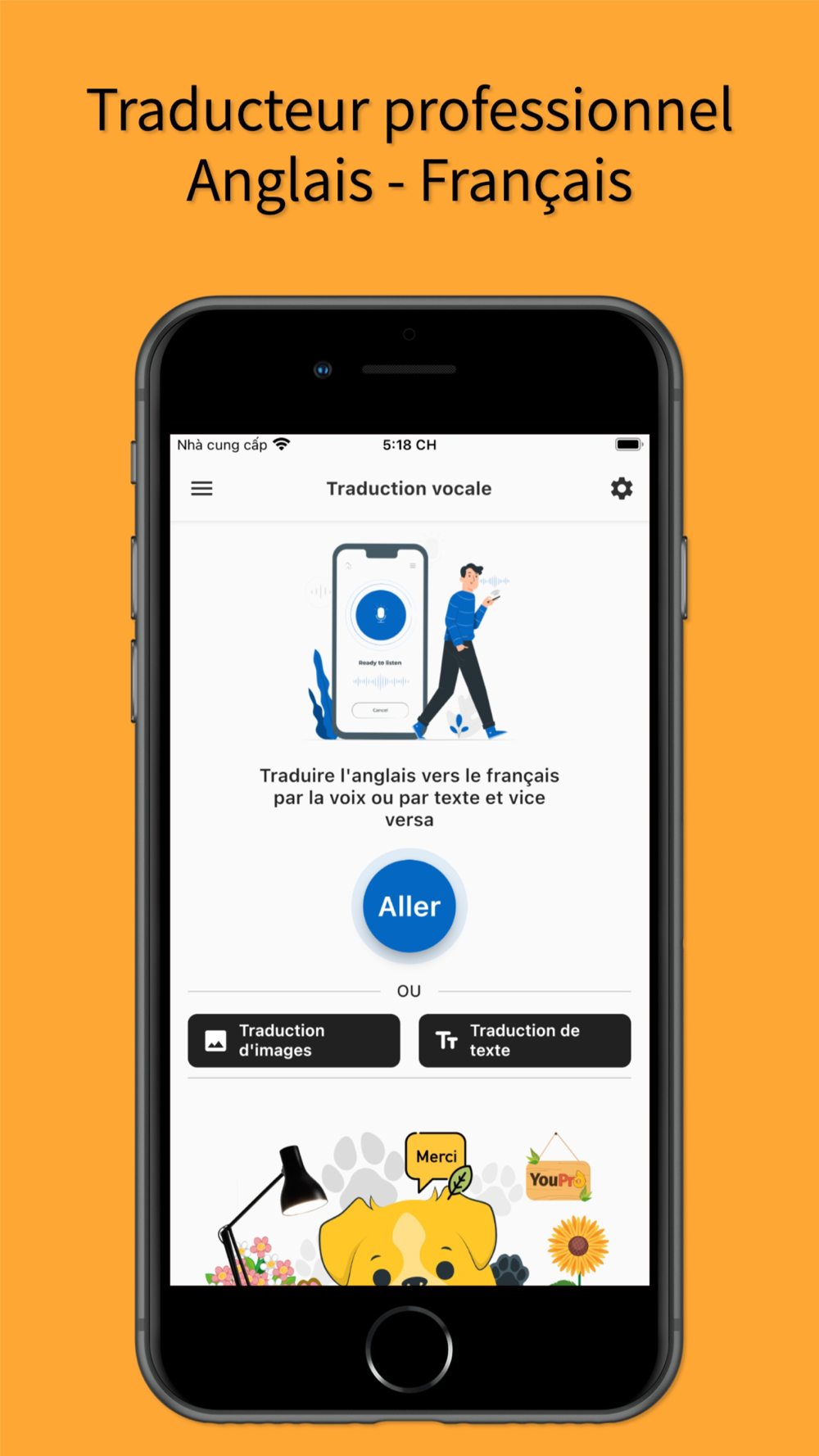 This English French Translator allows you to translate all documents, voice, images with the language is English or French. This application is a product of YouPro.