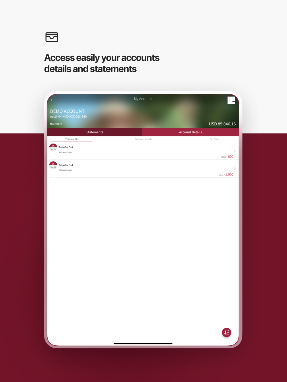 • My accounts (SBA Paris full e-banking experience)