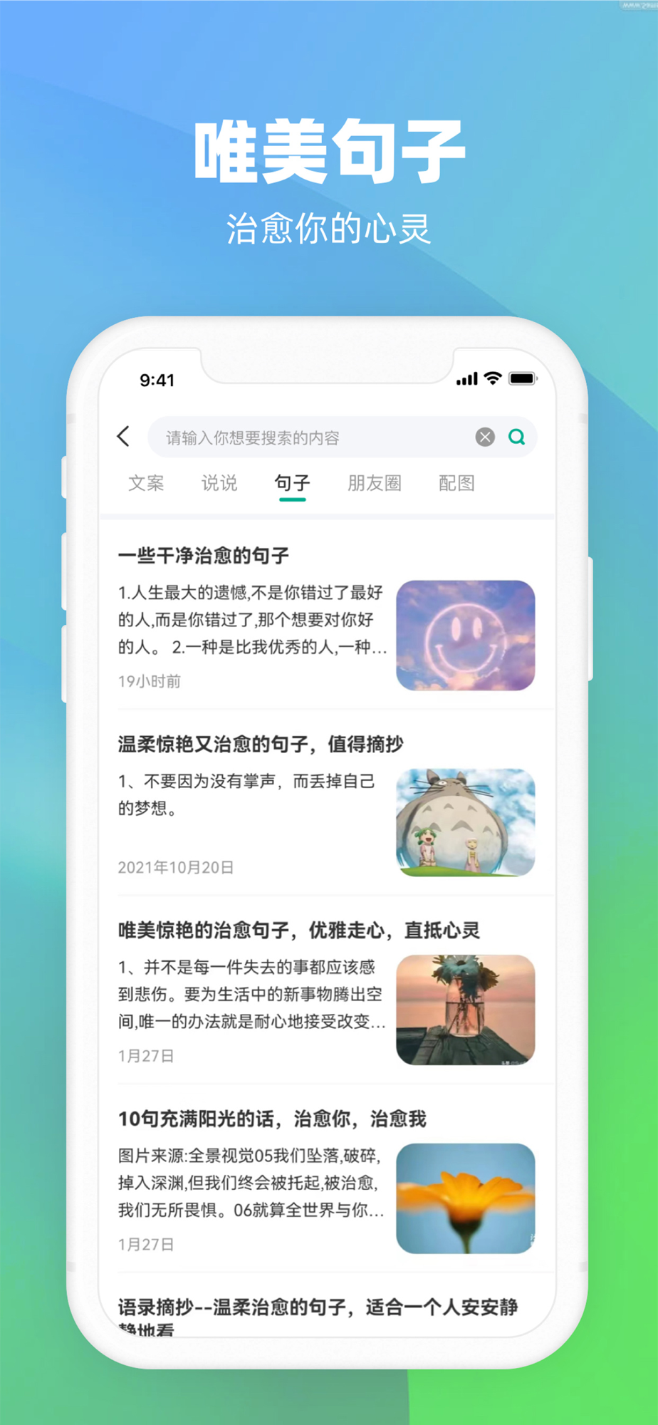 2、每日更新大量热门朋友圈文案配图,累计千万条朋友圈素材足以满足你所有的发圈需求。