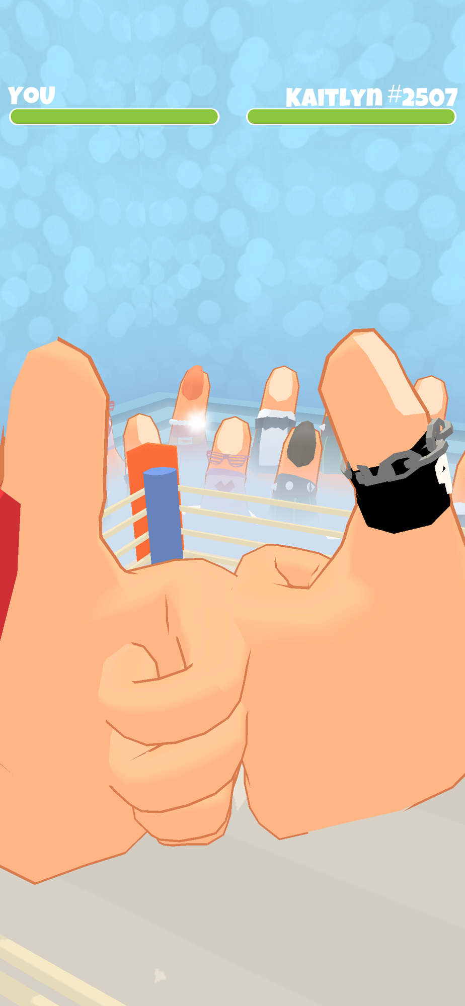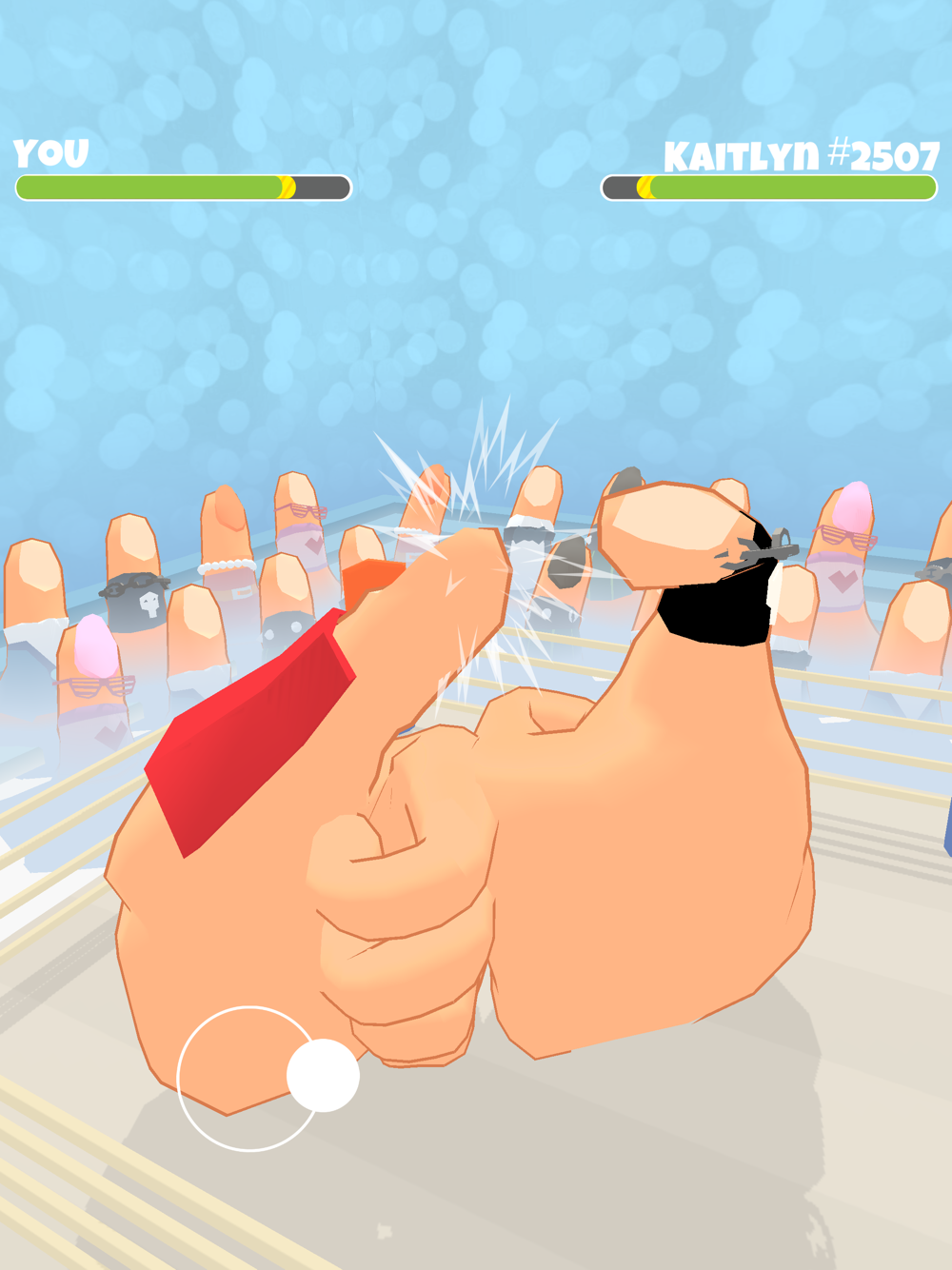 The fight of thumbs. Dodge and hit, it’s simple. Bury your opponent in the ring and be the master of thumb wrestling. Challenge the other thumbs and show them who is the strongest and most agile thumb in the world. Suit up very cool costumes to your thumb and be #1.