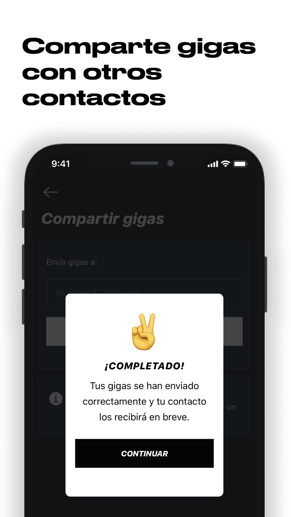 - Contactos: Se utilizan los contactos para visualizar el nombre de la agenda en vez del numero de teléfono, también pueden ser utilizados para seleccionar un contacto con el que se pueda realizar una acción como realizar una transferencia de Gigas. No almacenamos la información de los contactos ni se comparte con terceros.
