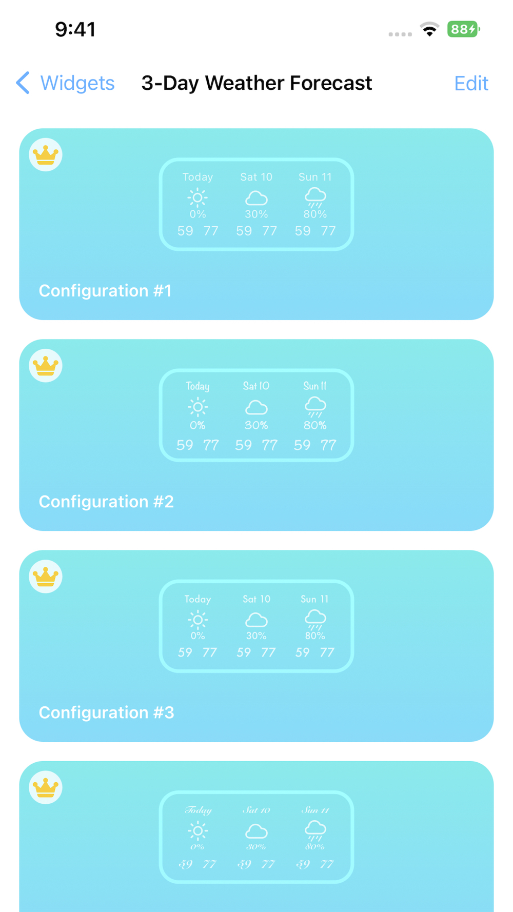Each widget can have multiple configurations.