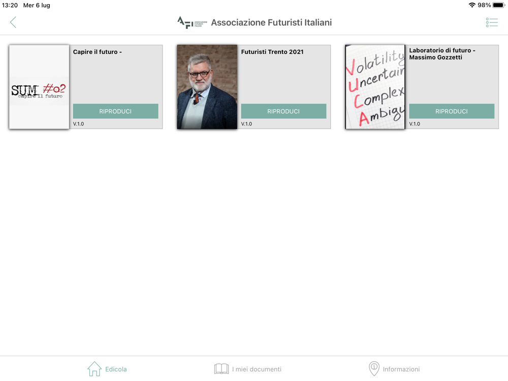 Applicazione dedicata alla comunicazione delle attività dell'Associazione dei Futuristi Italiani (AFI).