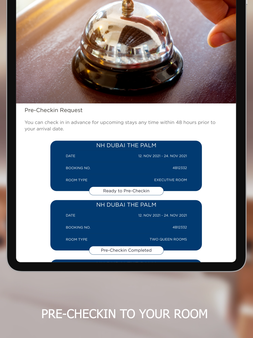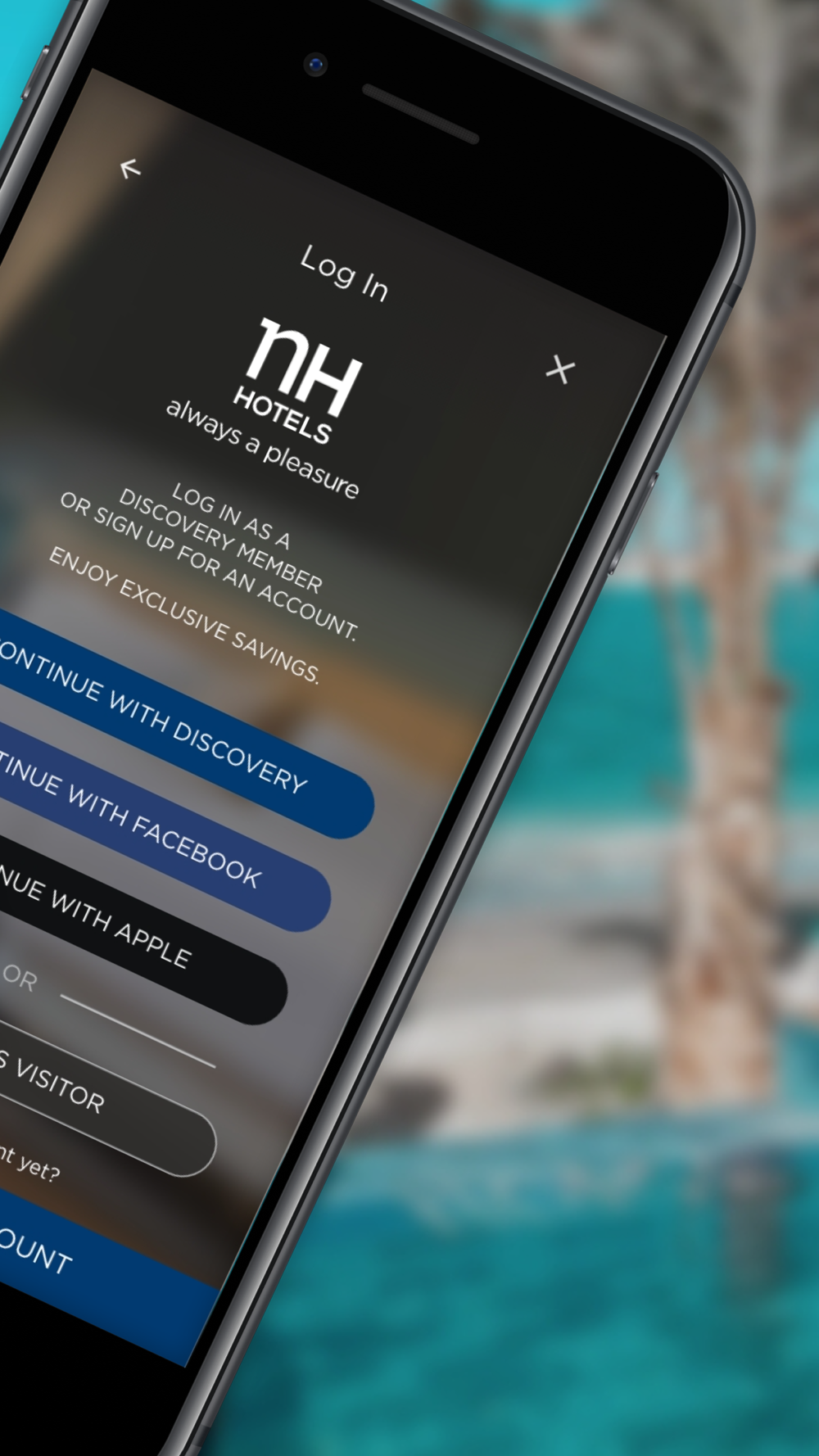 The app is also the perfect companion during your stay. Unlock a host of features and services in your room and around the hotel, such as booking restaurants or spa treatments, ordering room service, redeeming NH DISCOVERY loyalty rewards, and more.