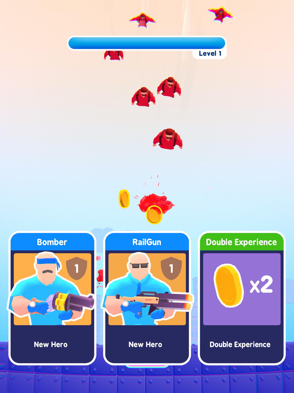 Collect coins to upgrade your weapons and team to destroy enemies and pass to next, more fun levels!