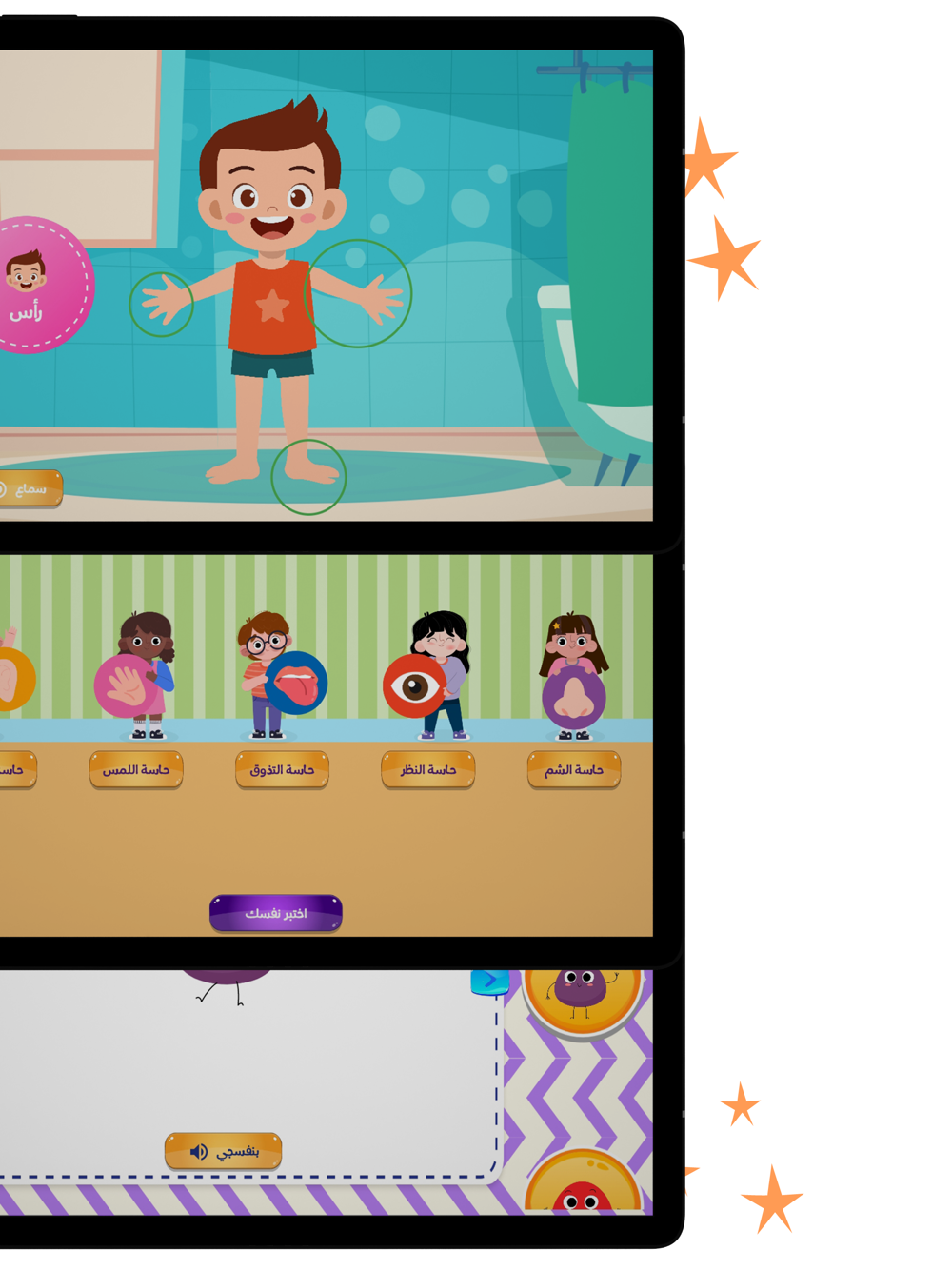 The game contains many educational and entertainment sections that help your child learn in an interesting way without getting bored and works to increase their awareness and develop their thought and imagination