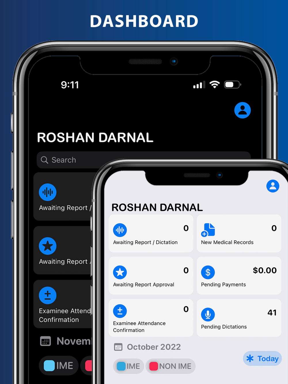 Secure single source mobile application for IME physicians, experts and medical consultants to manage and track IME cases.