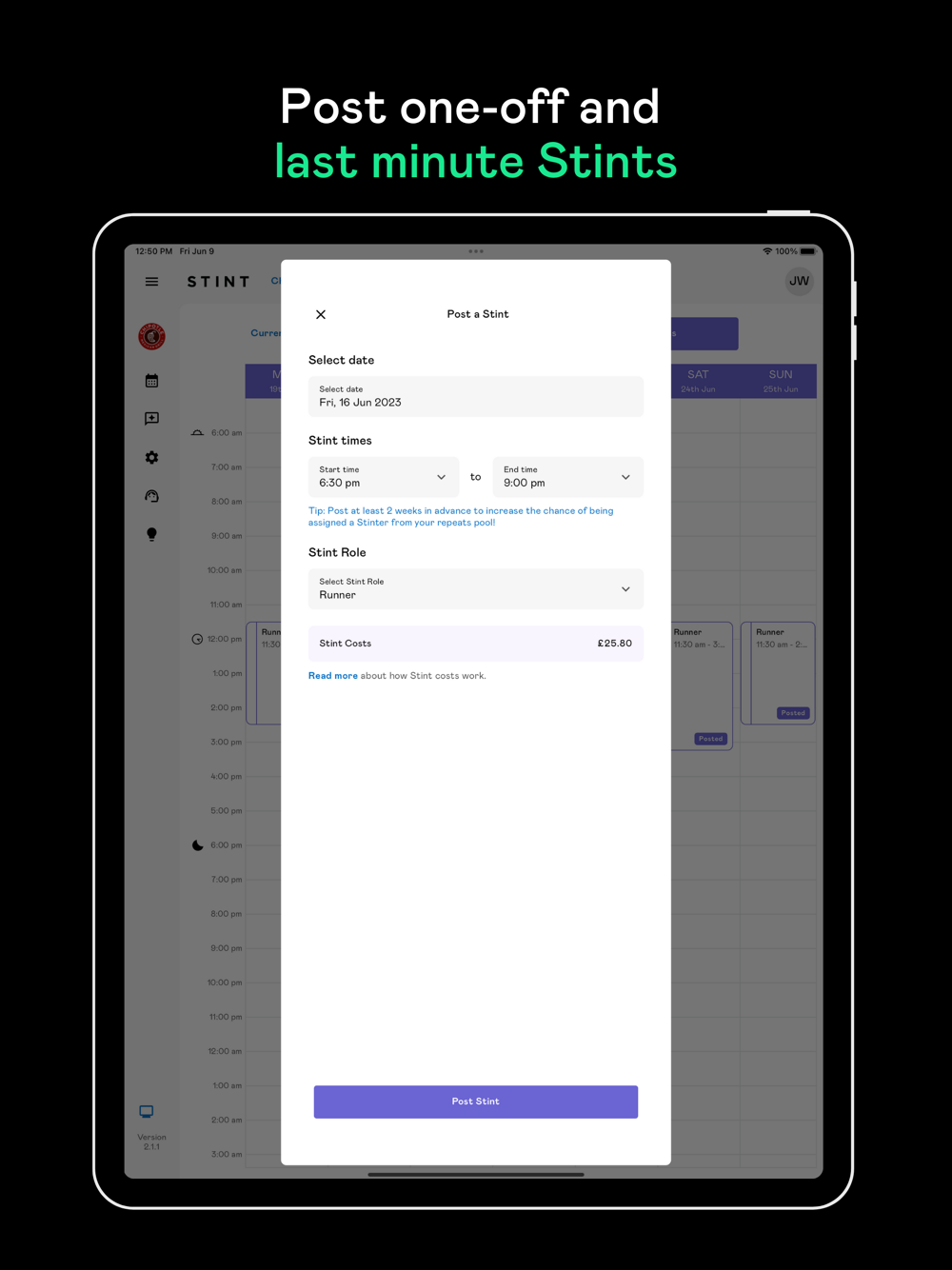 - Post one-off and last minute Stints when you need them.