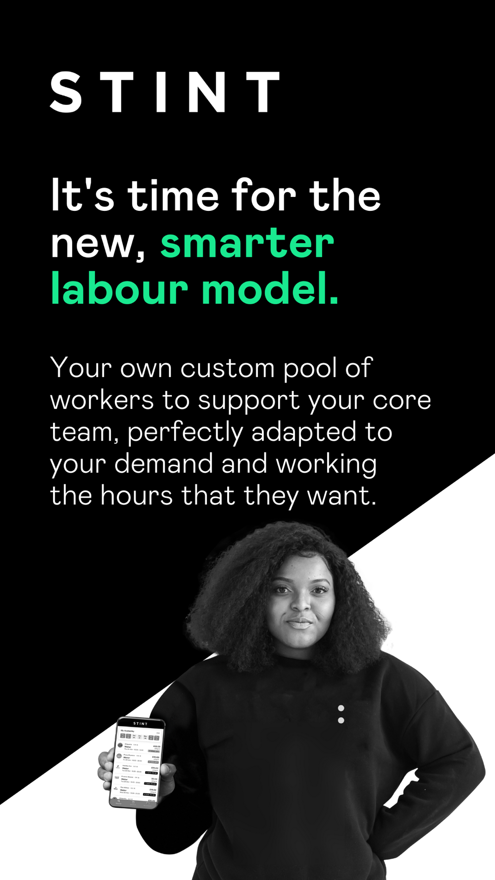 - Stinters work during your busiest periods - for Stints as short as 2 hours.