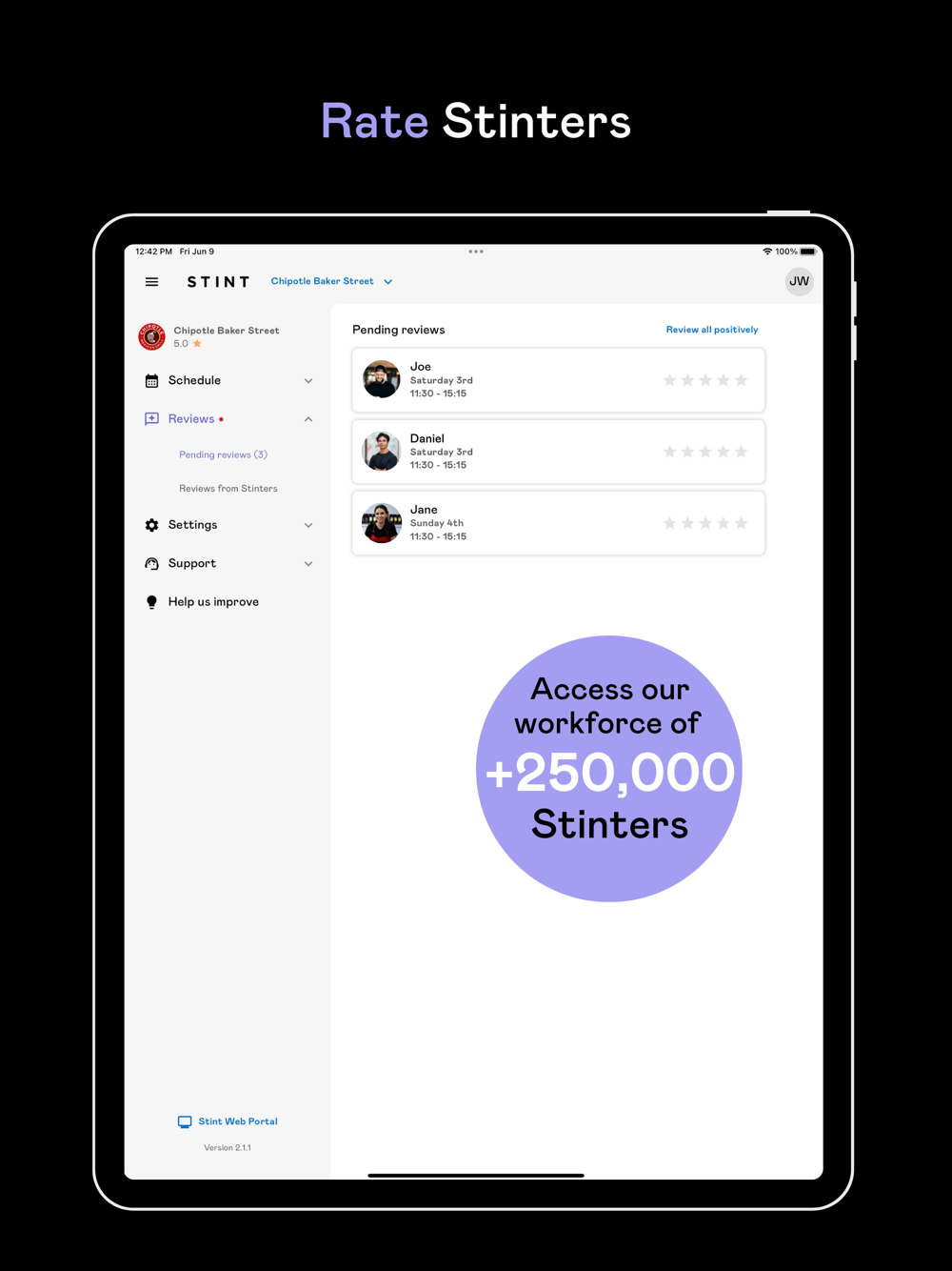 3. Rate Stinters: Our matching algorithm shows your upcoming Stints to those you rated highly.
