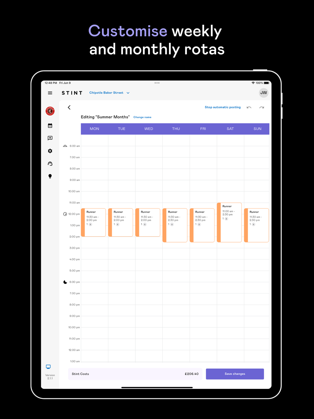 - Create custom templates that integrate Stints into your rota.