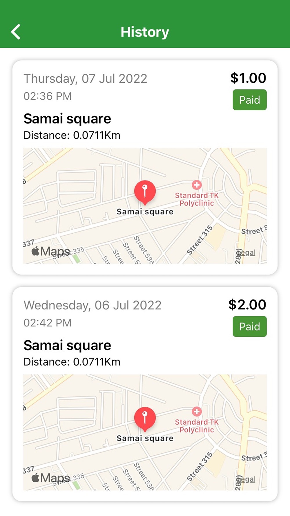 6. Driver press finish button on the arrival spot, money transferred to driver