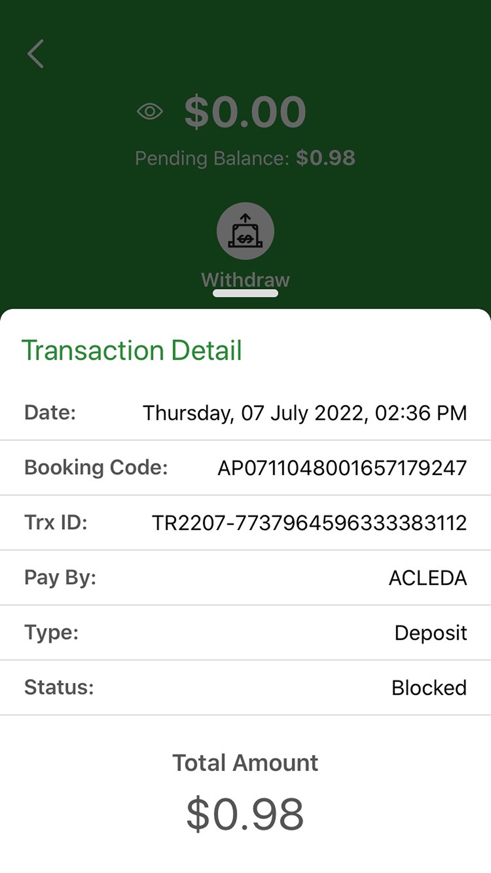 Drive withdraw money from app.
