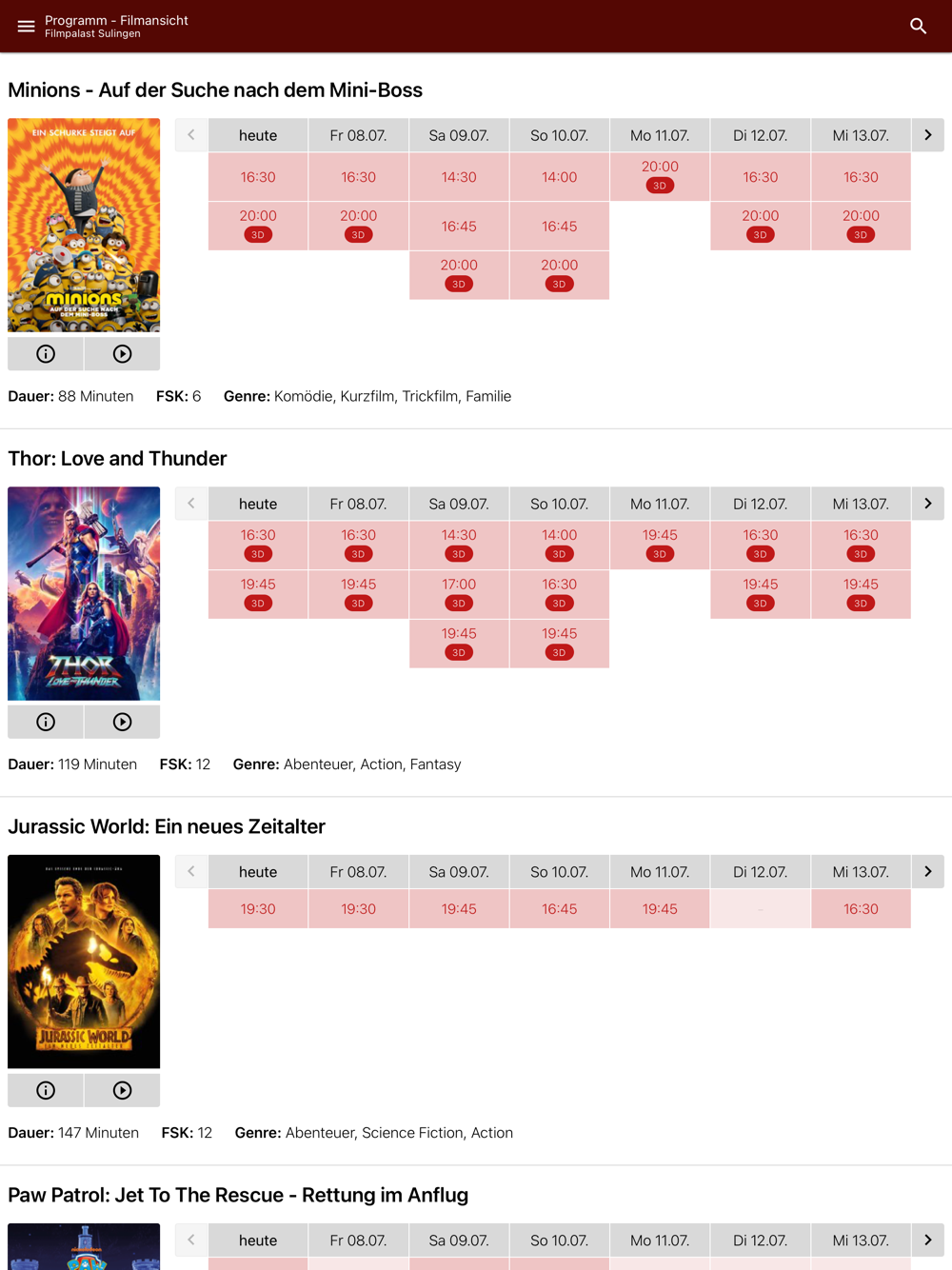 Hier kaufst Du in unter einer Minute Kinotickets für Deinen Lieblingsfilm. Schnell, sicher, einfach und ohne Anstehen an der Kinokasse. Einfach aus dem aktuellen Kinoprogramm Deinen Film buchen und Du erhältst die Tickets einfach & bequem als E-Ticket auf Dein Smartphone und an Deine E-Mail-Adresse.