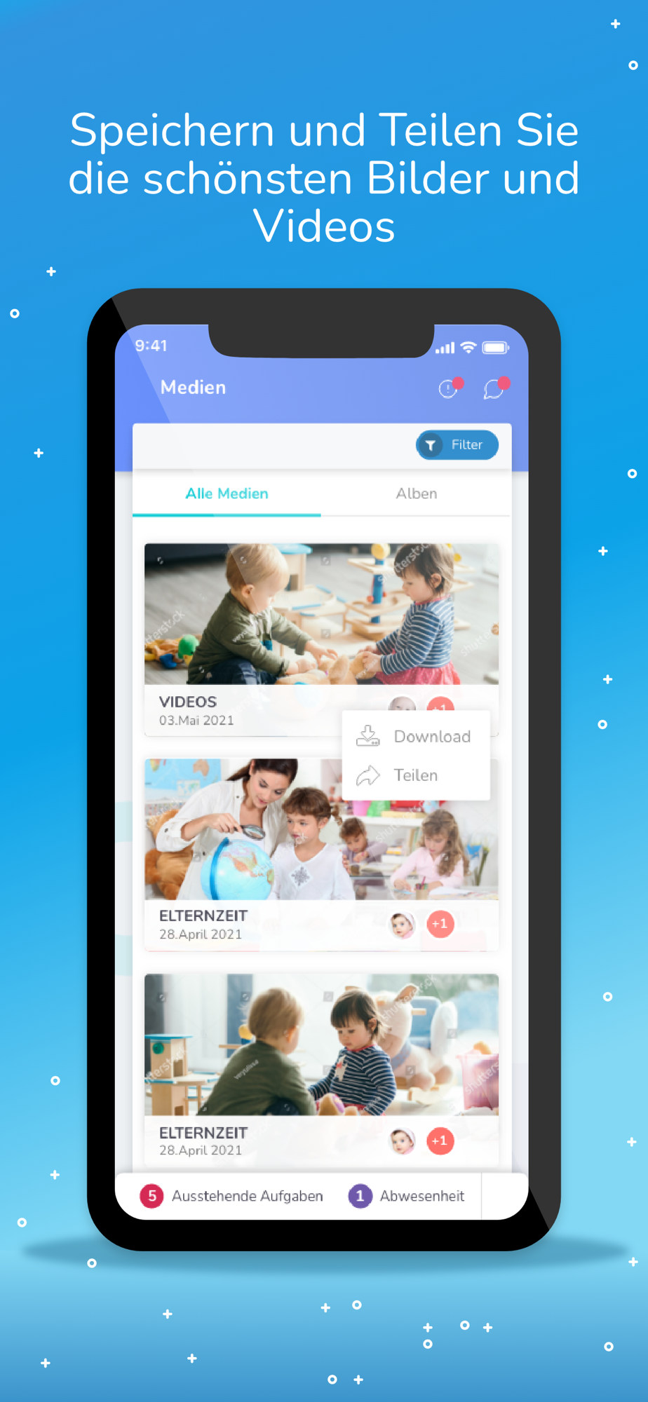 Die Bambini Kita-App stärkt die Partizipation zwischen Kita, Fachkräften und Eltern. In diesem geschützten Umfeld können Sie am Kita-Alltag teilhaben und erhalten wertvolle Einblicke in die Entwicklungsstufen Ihres Kindes. Die Freischaltung für die App erfolgt durch den Träger Bambini. Bei technischen Fragen zu der App können Sie das Kidling Support Team unter