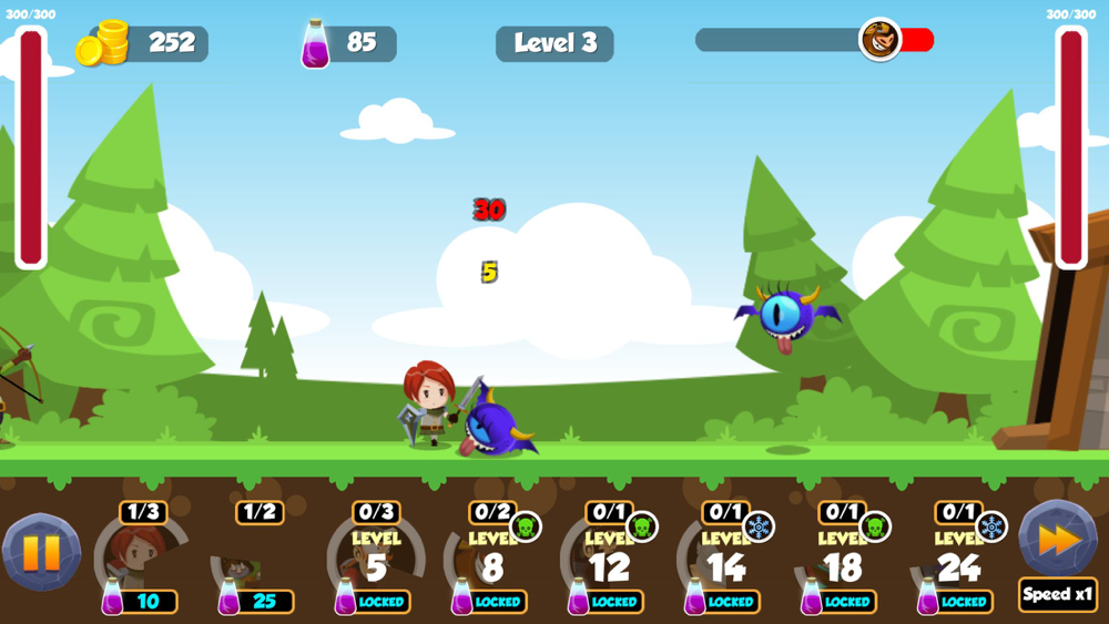 Protect your village from enemies(on the left side of the screen) and destroy the village of your enemies (on the right side of the screen).
