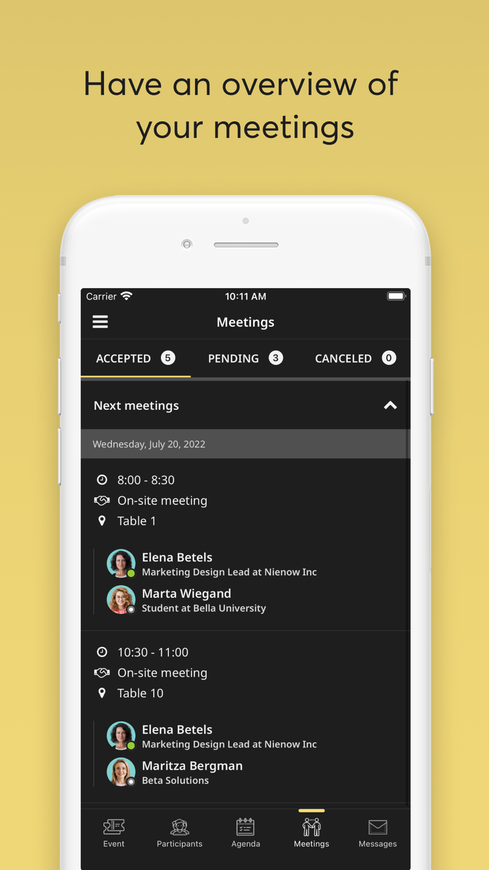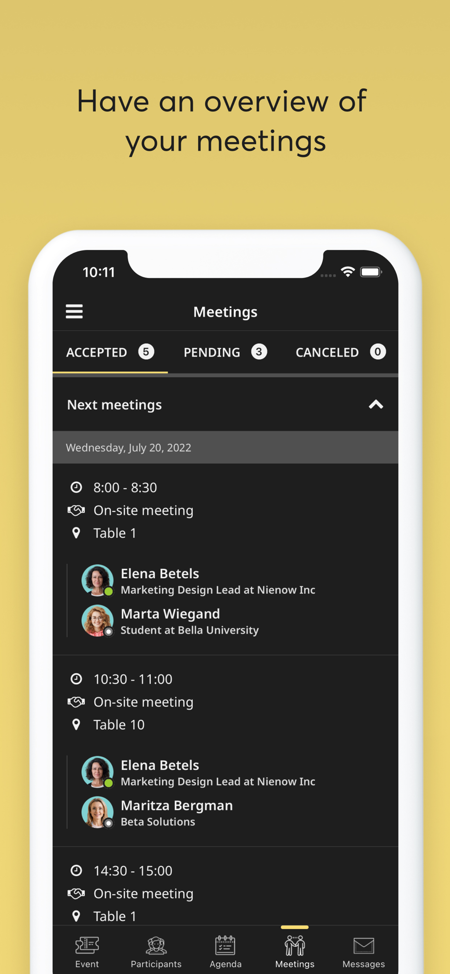 The Startup Nights App enables you to directly book other participants for face-to-face meetings and provides you with your personal agenda, including all your meetings, sessions, workshops, etc. In addition the App delivers all the vital information needed for a seamless event experience.