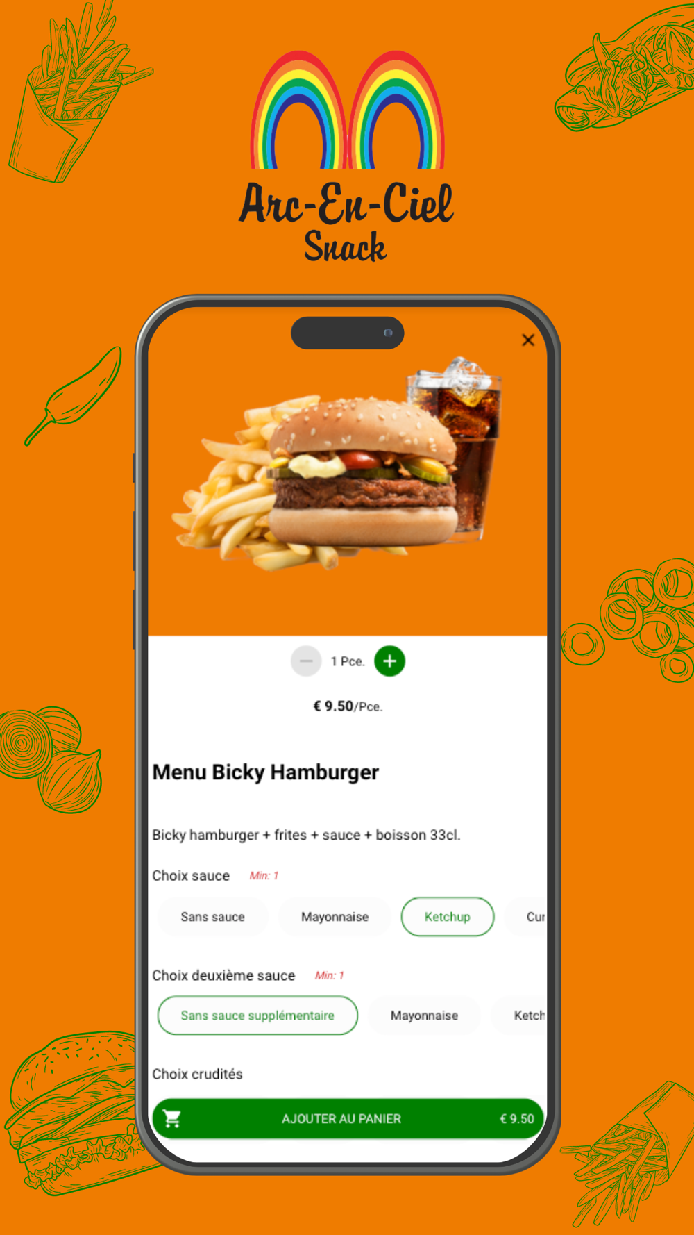 Où que vous soyez, avec l'application Snack Arc-En-Ciel, vous pouvez commander sans souci parmi la vaste gamme de frites, durums, snacks, ...