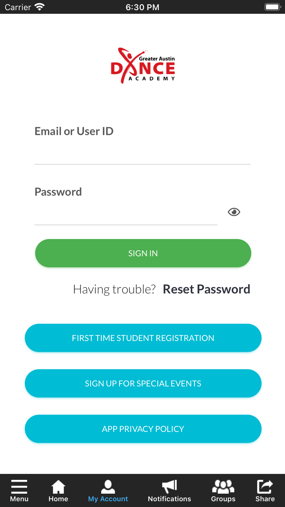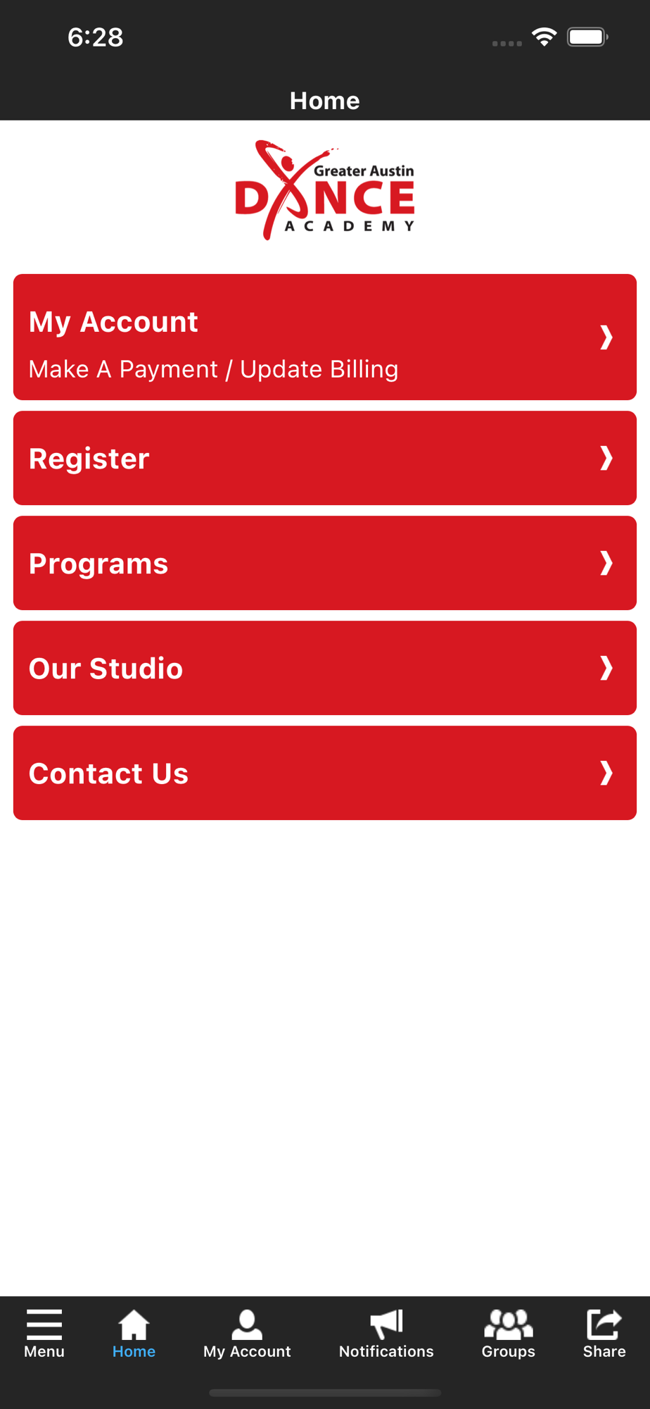 The Greater Austin Dance Academy app allows you to manage your account with ease, register for classes, pay tuition, and even check in on your child's class! You'll also receive important notifications about event dates, closings, registration openings, special announcements, and upcoming events.