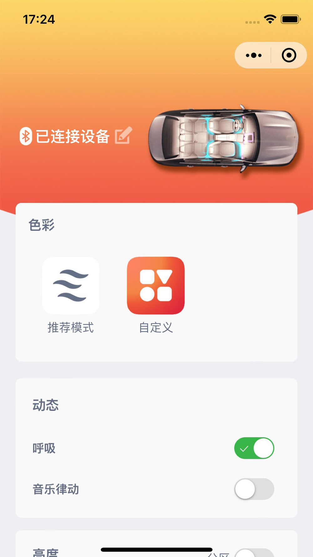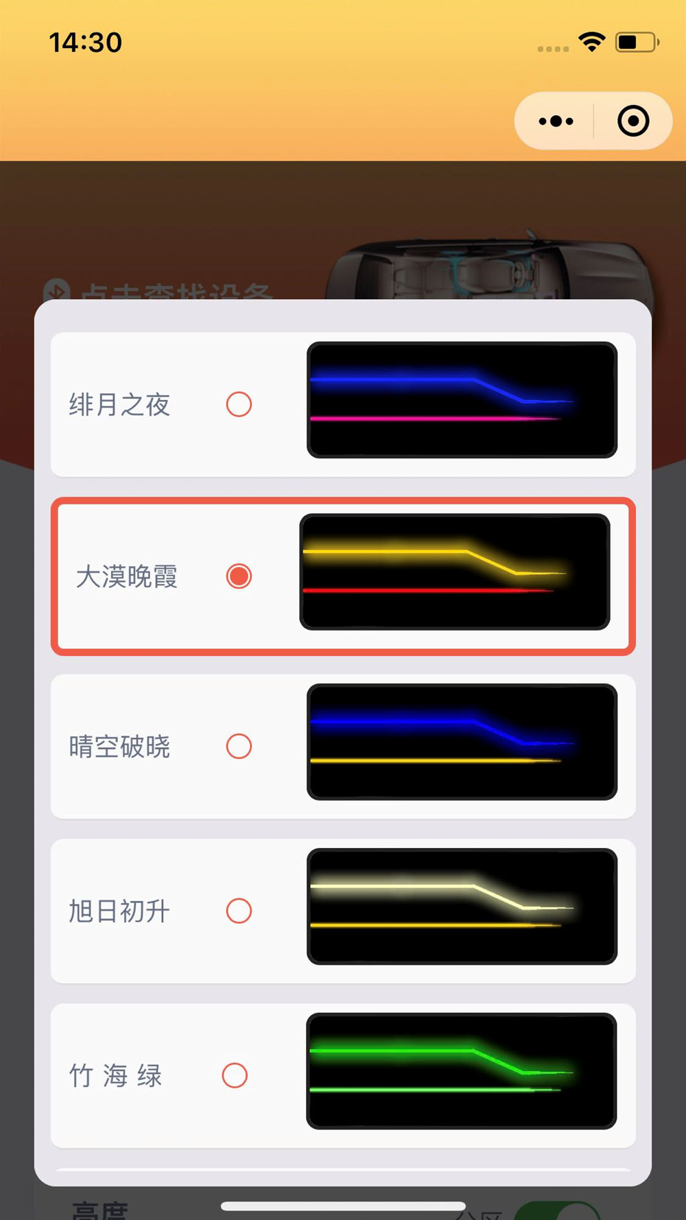 Car comfort cabin, atmosphere lamp setup, electronic handle and other settings