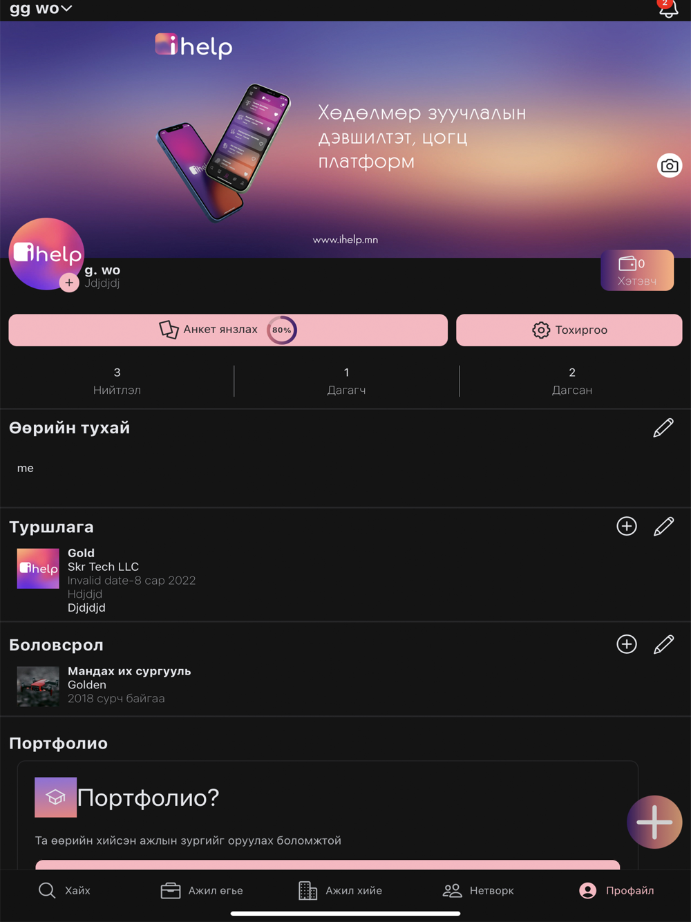 Монголын хамгийн анхны хөдөлмөрийн зах зээлийн мэдээллийн төвлөрлийг бий болгох зорилготой 'ihelp.mn' платформ.