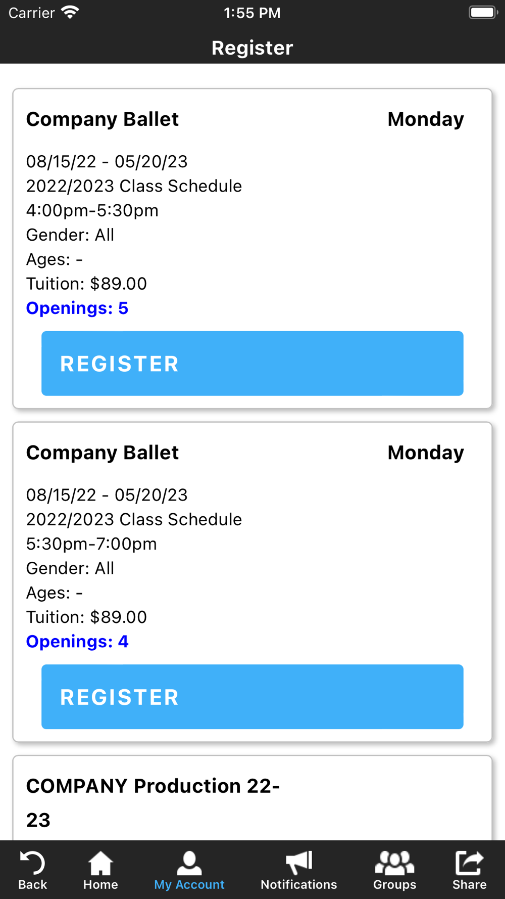 The Gulf Coast Dance Alliance app allows you to manage your account with ease, register for classes, parties, and special events. You'll also receive important notifications about class changes, closings, registration openings, special announcements, and upcoming events.